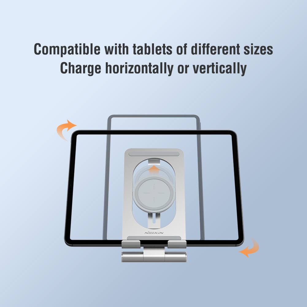 Nillkin PowerHold Tablet Wireless Charging Stand - 15W Multi-Angle Fast Charging Non Slip Movie Watching IPad Pro Mate Adjustable Metal Portable Foldable
