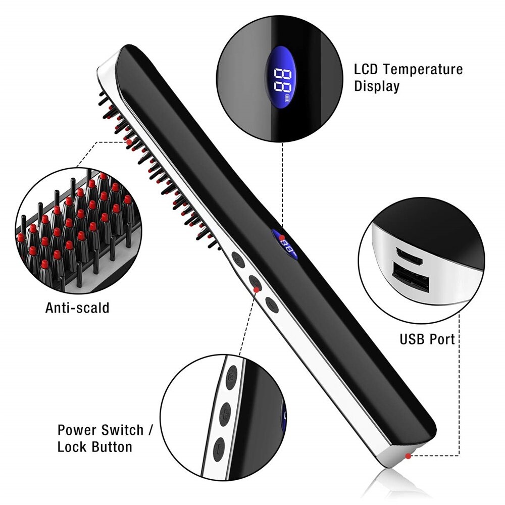 --PORTABLE CORDLESS STRAIGHT HAIR COMB, CONVENIENT TO CARRY: No need to connect to the socket, don't worry about being caught by the wire. No matter where you are, you can use our hot brush to scrape your beard straight and smooth. Suitable for travel, home, office etc.