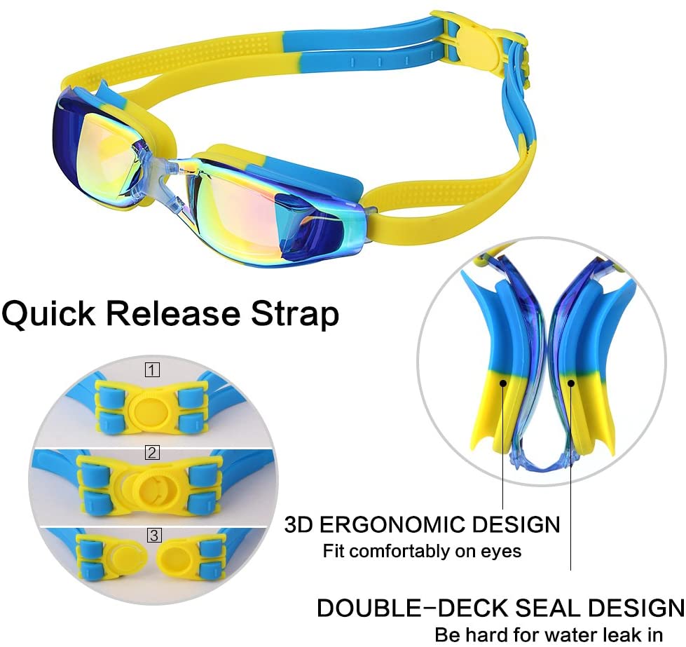Otter Kids Swim Goggles, Swim Goggles for Kids Children Swimming Goggles with Anti-Fog UV Protection No Leaking Coated Lens with Case for Boys Girls Youth Kids