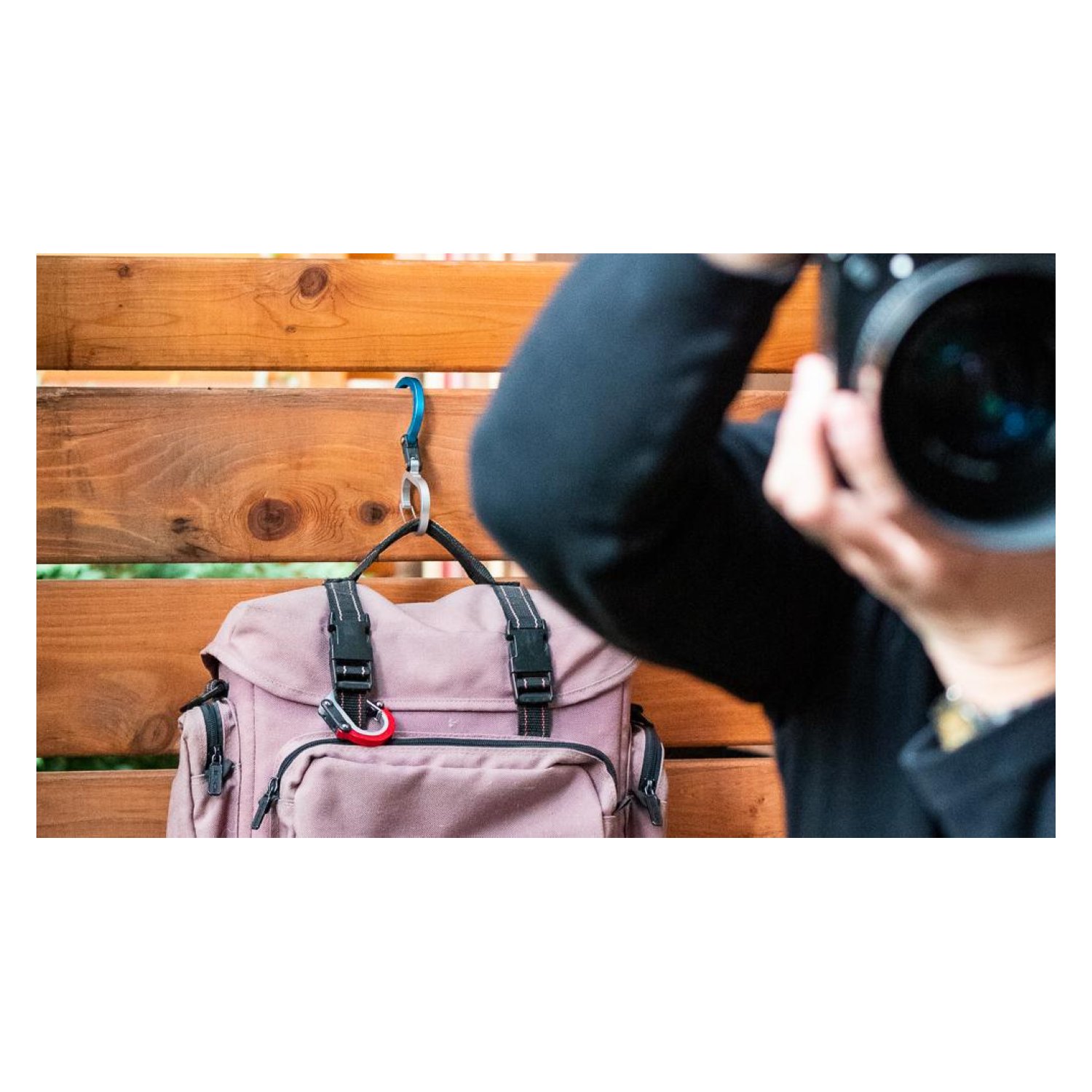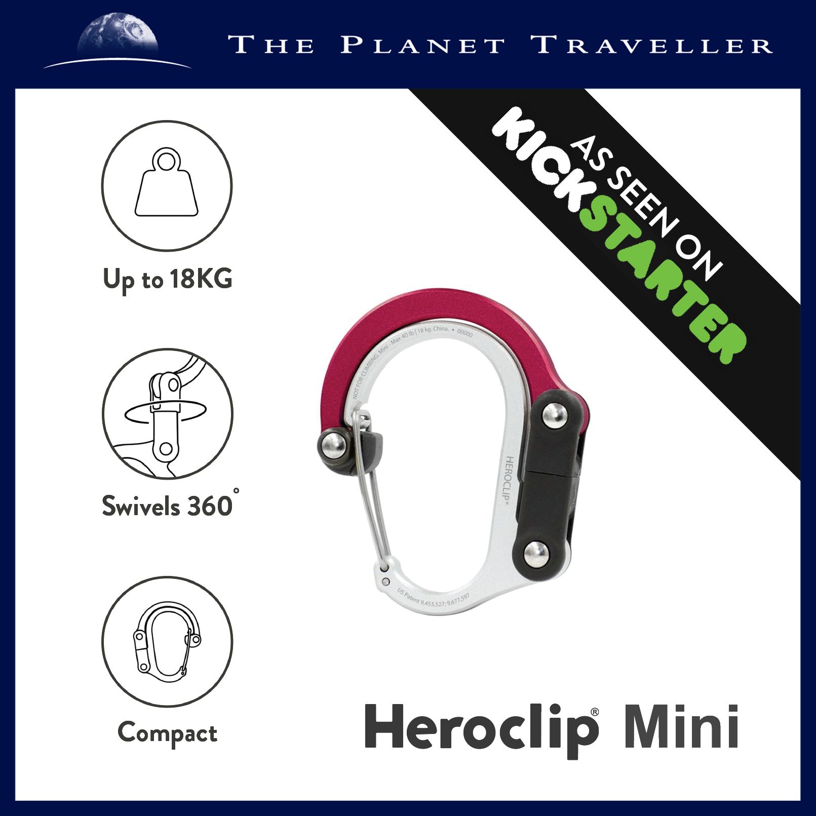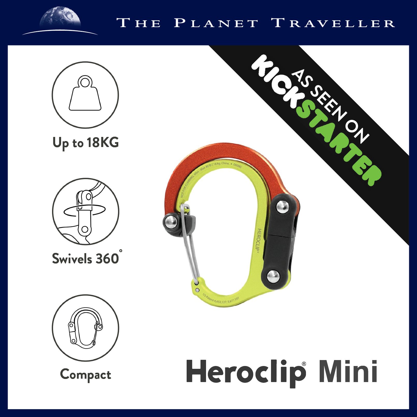 Our tiny but mighty Heroclip Mini gear clip lets you hook and hang small items, such as bags and toiletry kits from towel racks, lights from a tent or a tree branch, or tiny speakers from a wire shelf. And the mini size is perfect for slipping into a pocket or purse, so you have an extra helping hand whenever you need it. This versatile gear clip hangs securely, rotates 360 degrees, and folds compactly in ways other carabiners, clips and hooks can't, helping you keep your gear organized and exactly where you want it, no matter the activity. The clip also features a wider clip gate compared to standard carabiners and clips, and a hook with a grippy rubber tip.