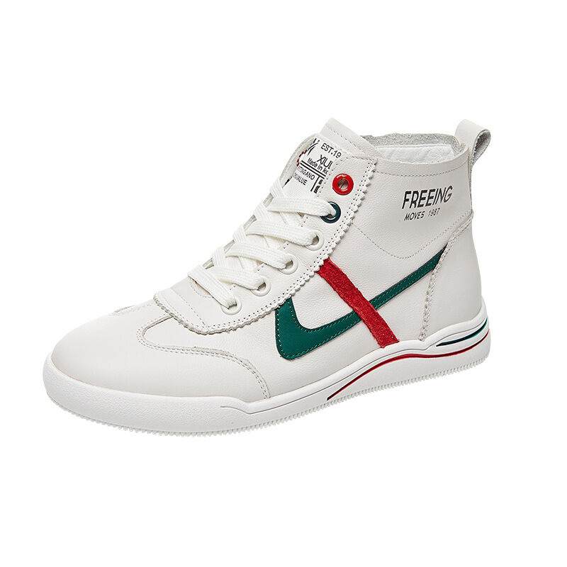 Hong Kong Fashion Brand Genuine Leather White Shoes for Women 2022 Spring and Autumn New Korean Style Versatile Breathable High-Top Casual Sports Shoes