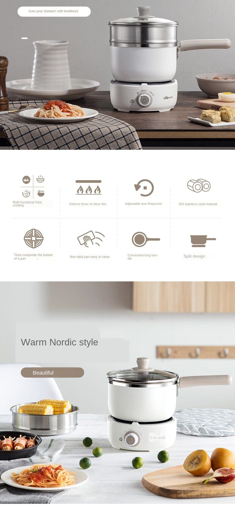 Bear Electric Hot Pot Student Dormitory Cooking Noodles Home Mini Multi-functional Small Electric Hot Pot Electric Frying Pan DRG-C12M2