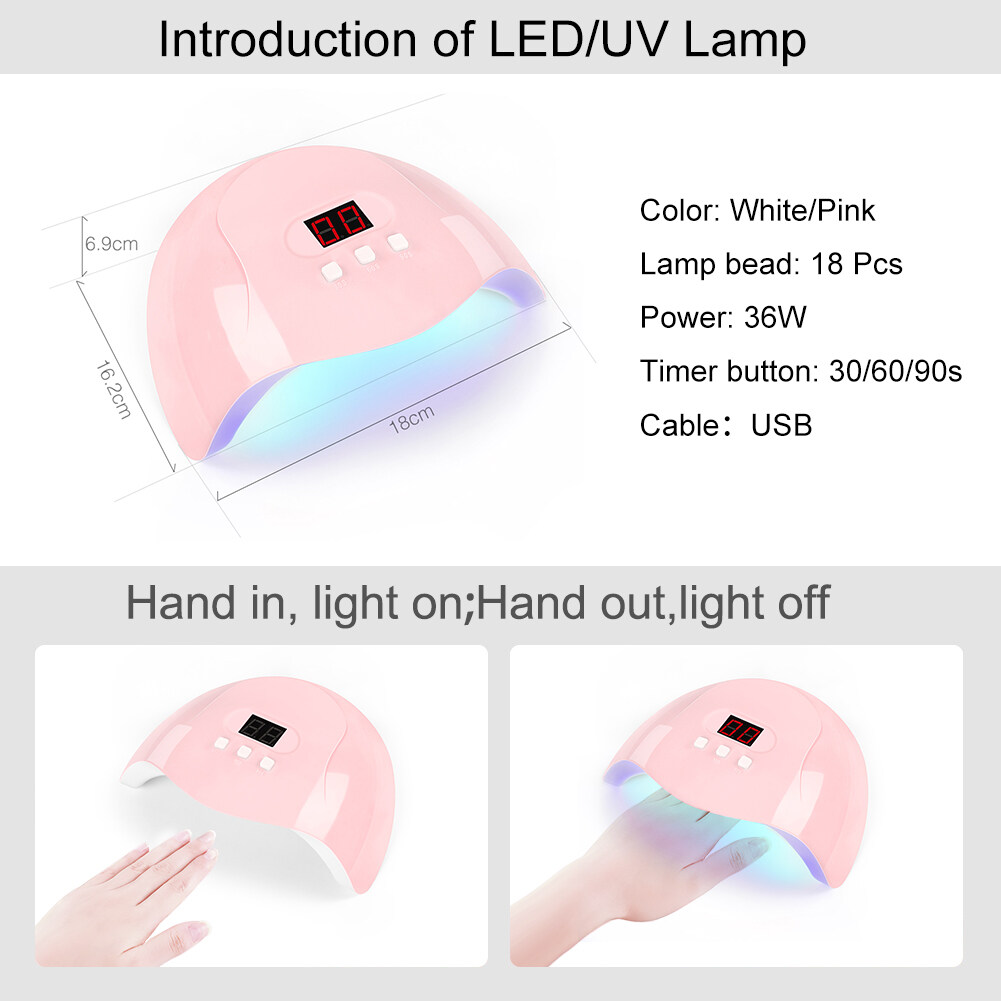 COSCELIA 36W UV LED Lamp Nail Lacquer 8ml 10 Color Gel Polish Nail Decoration Set Nail Art Kit Manicure Tool