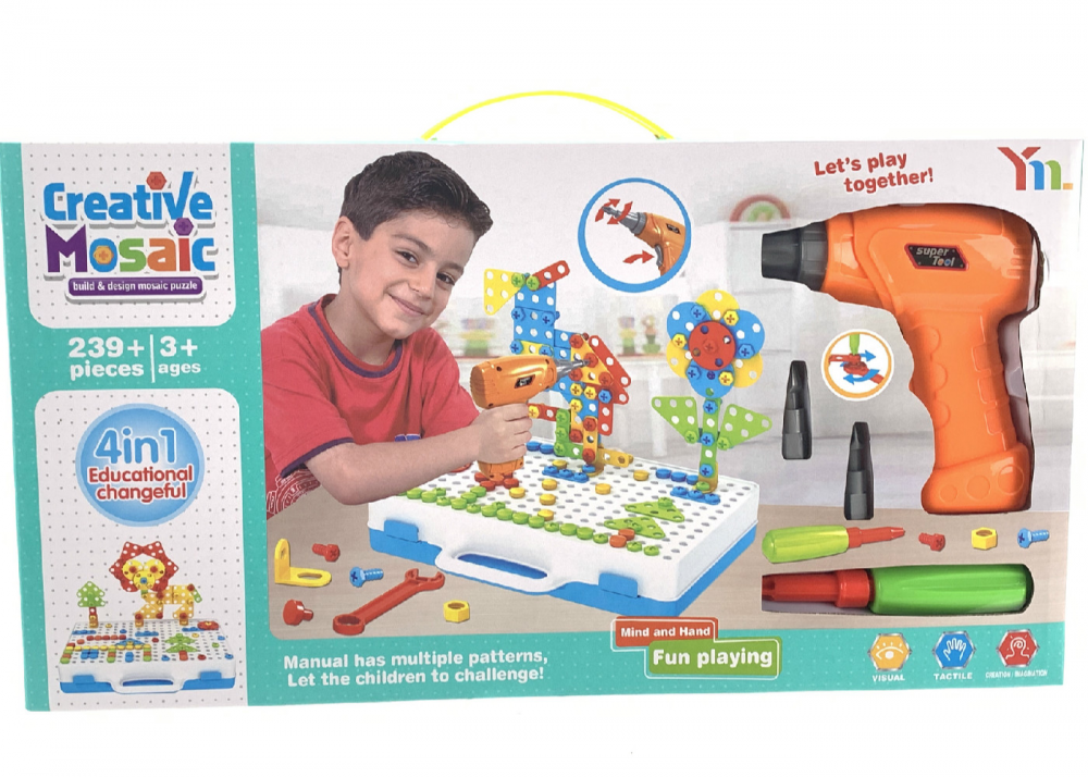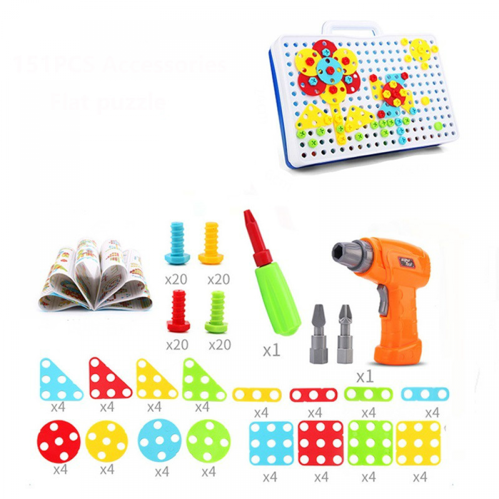 Creative Mosaic Puzzles Play Toys Set Screw Nuts Tools Building Toys For Kids