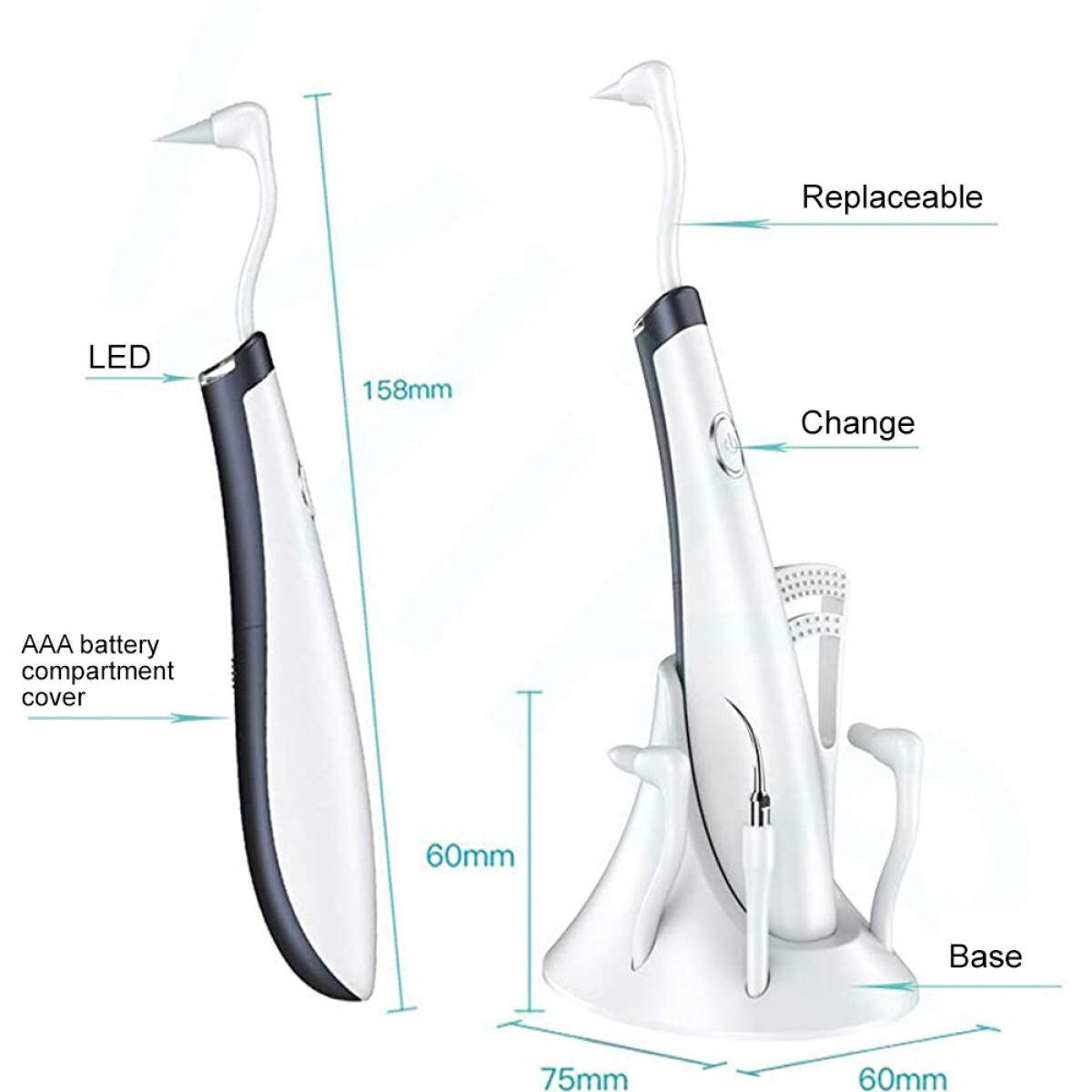 【High-Frequency Vibration】12000 rpm high-frequent sonic vibration along with professional cleaning head effectively helps eliminate the dental calculus, plaque and stains, achieving the thorough cleaning of teeth.