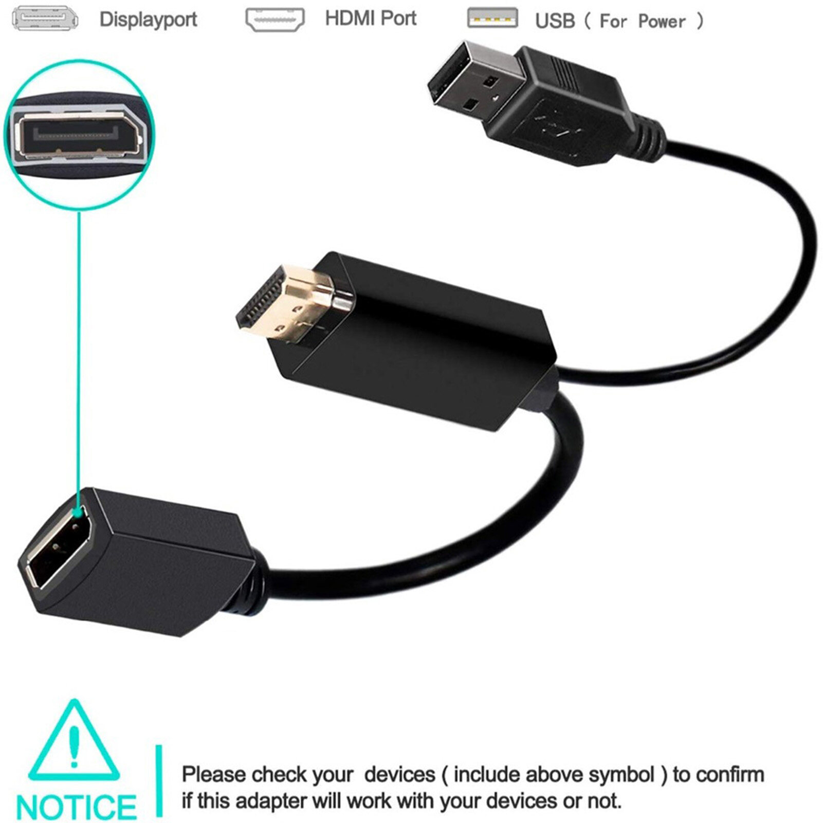 The adapter is not bi-directional. It only converts the HDMI output signal (source device) to the DisplayPort (monitor/monitor)