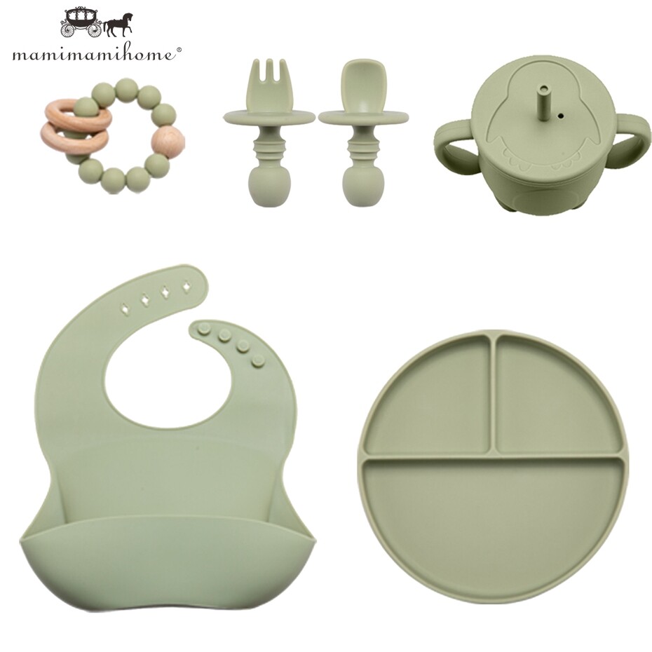 Baby Feeding Meal SetPackage:5 PCS/Set (1 x Bib,1 x Suction Plate,1 x Sippy Cup,1 x Spoon& Fork,1 x Teething Bracelet)Use for:Baby Gift,Kids feedingItem Features: - PERFECT FIRST BOWL SET: Baby Bowl Set is the perfect first bowl set for babies and toddler just starting to eat solid foods. Our improved bottom suction ensures a strong suction to any flat surface at home or on the go! As parents we know the importance of spending more time with our babies and less time cleaning and we are sure that this set does just that.