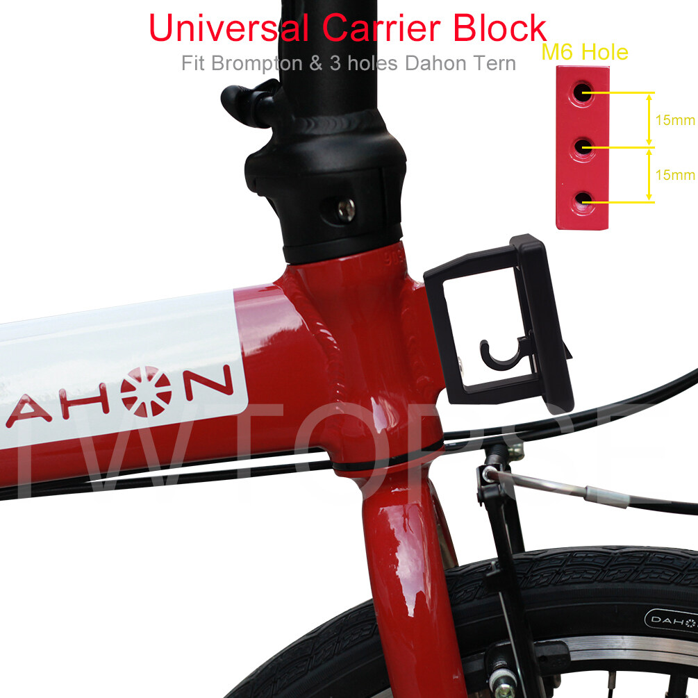 the universal carrier block fit 2 holes and 3 hole folding bike. please check this size picture.