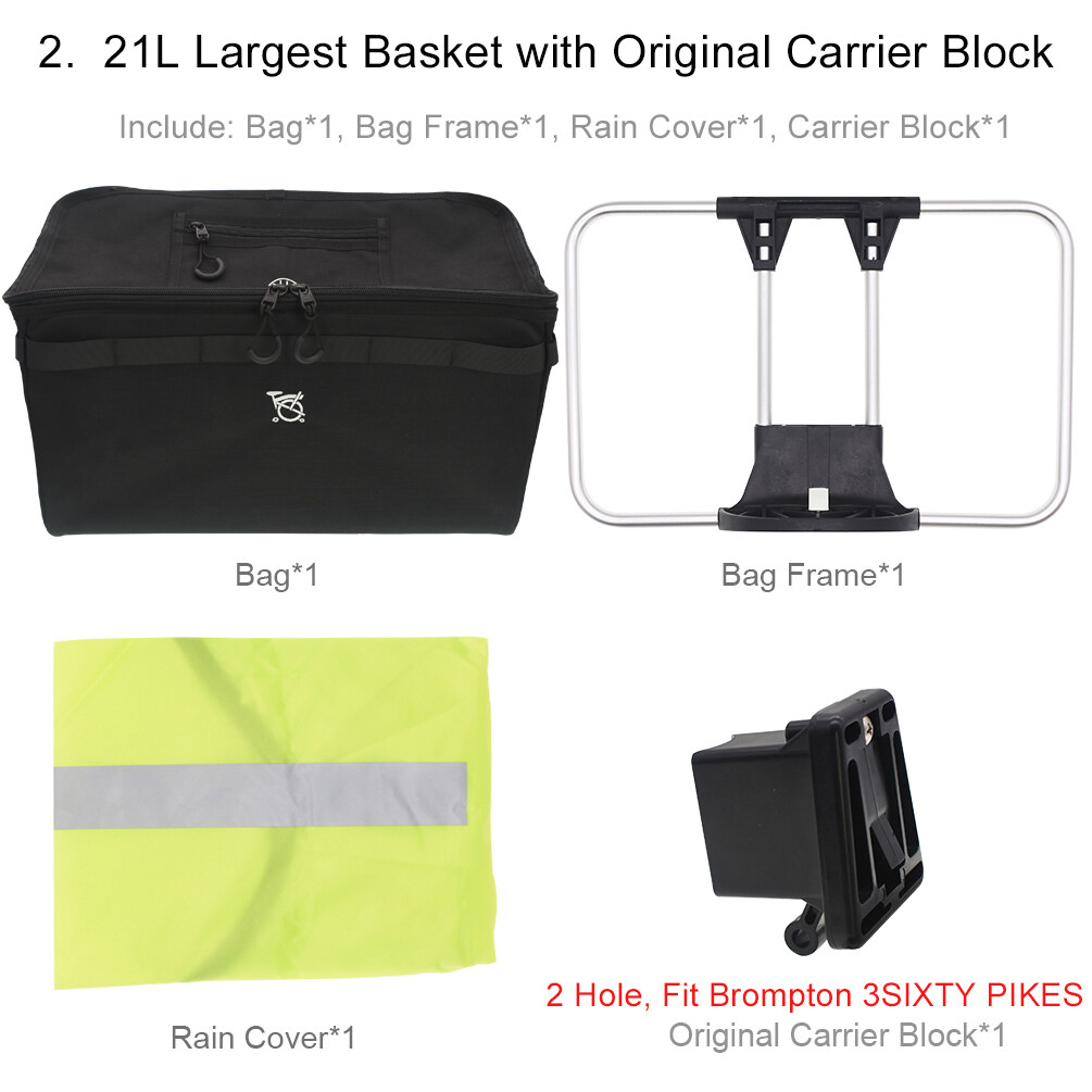 1. The "Basket" option: If your bag has the original carrier block(plastic front block), you could choose this option. It fit Brompton, 3SIXTY, PIKES folding bike. (this basket don't fit other brand alloy carrier block, please choose TWTOPSE brand. )