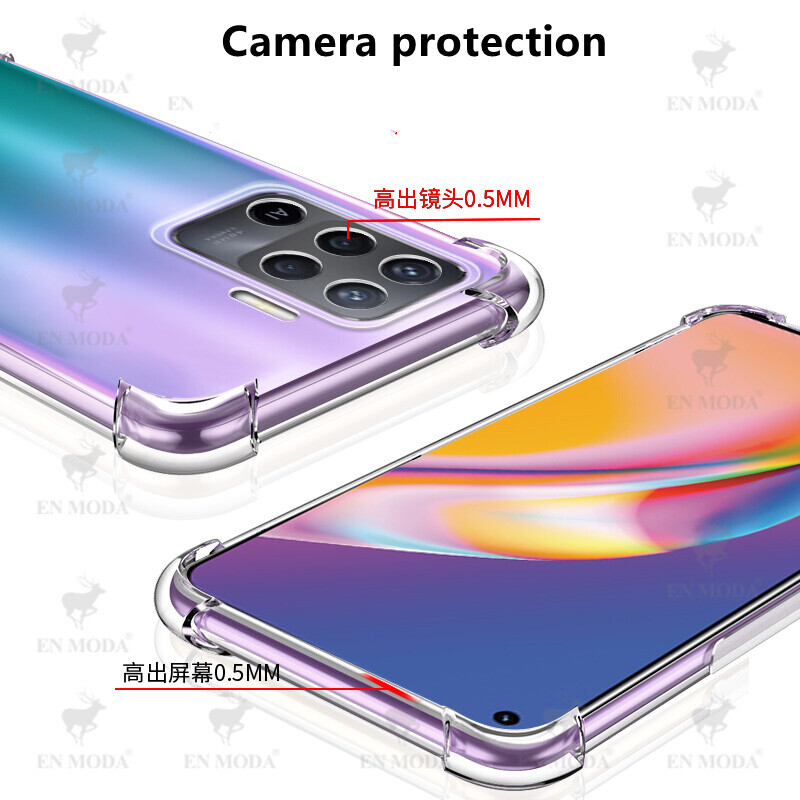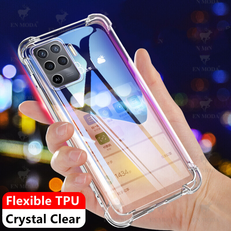 For OPPO A94 4G CPH2203 Slim Crystal Clear Soft TPU Bumper Cushion Jelly Case with Four Reinforced Corners Transparent Scratch Resistant Protective Cover