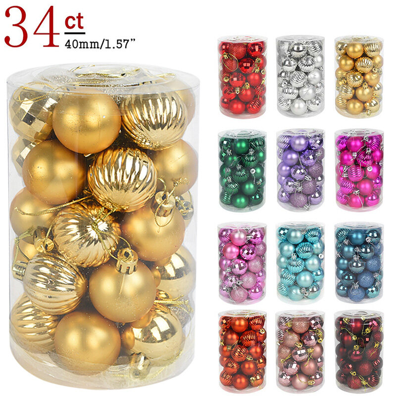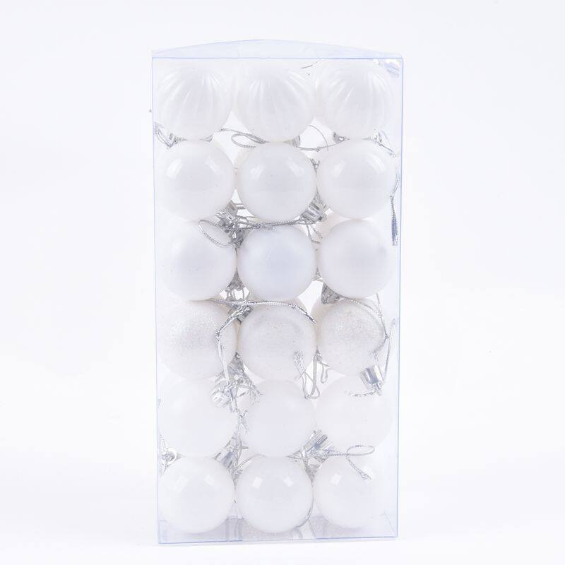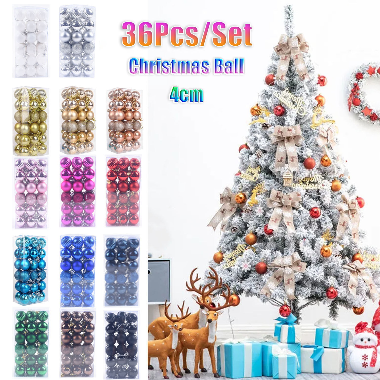 Product name: 4CM 36 pcs Christmas balls material: plastic Box size: 5.8*11.7*23.7 Christmas ball size: 4cm Quantity: 36 pcs/box