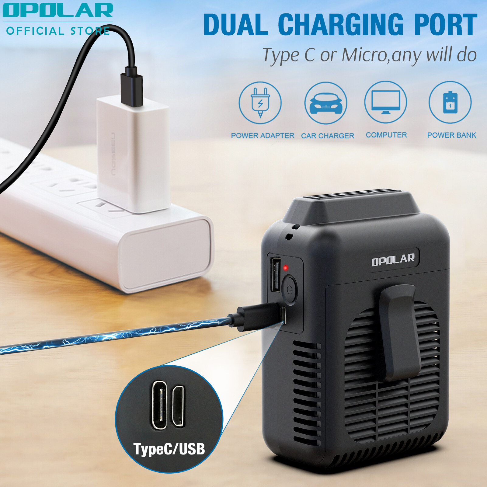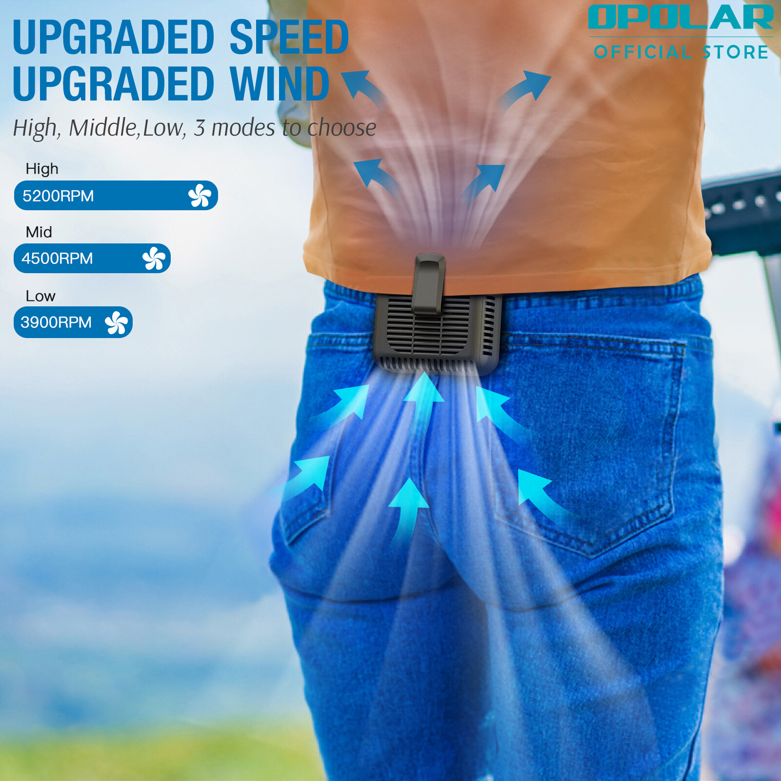 【Local Stock】OPOLAR 8000mAh Portable Waist Clip on Fan, Personal Neck Fan with 32H Working Time, Battery Powered Belt Fan, Adjustable air outlet, 3 Speed, Body Fan for Outdoor Working, Camping, Hiking