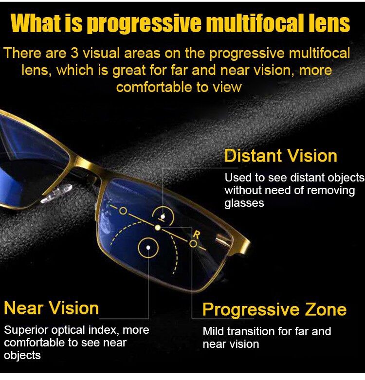【3in1】Progressive Multifocal Reading Glasses Smart Zoom Anti-Blue Light Metal Frame Glasses Business Style Presbyopic Glasses