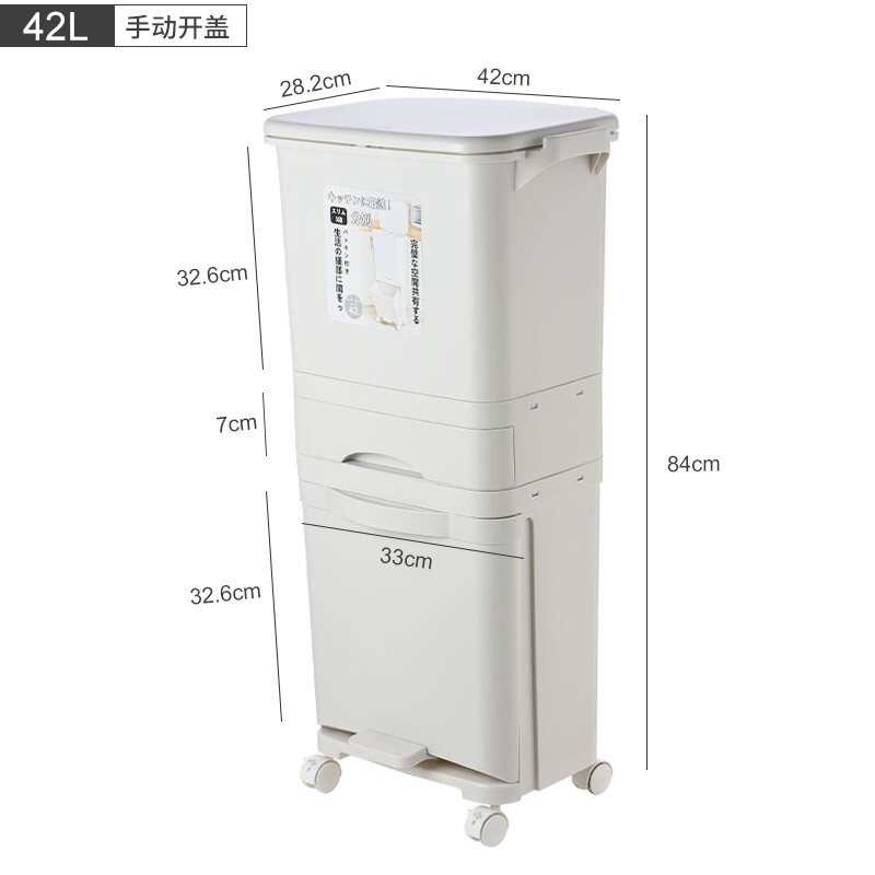 Garbage Classification Household Double-Layer Trash Can Dry Wet Separation Dustbin Japanese-Style Large Kitchen Trash Can with Lid