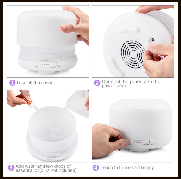 500ML 4 in 1 Ultrasonic Humidifier Aroma Diffuser Aromatherapy LED Lamp