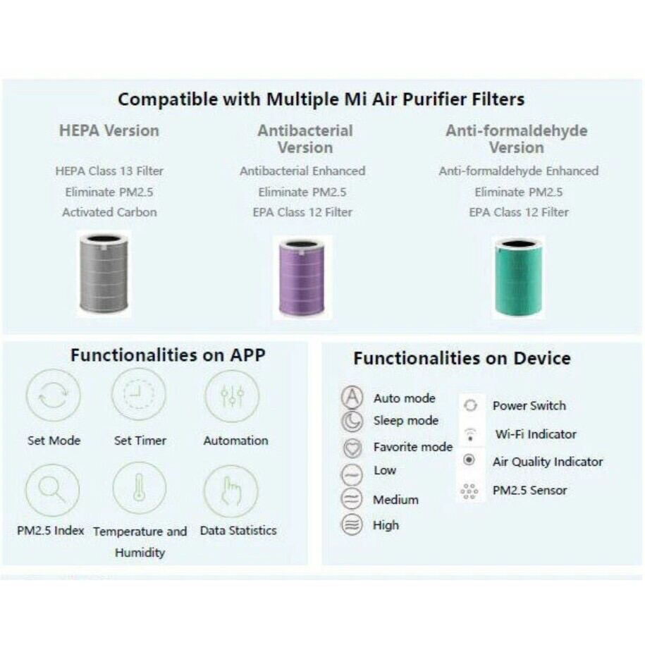 Suitable for Xiaomi Mi Purifier, Xiaomi Mi Purifier 2, Xiaomi Mi Purifier 2C,Xiaomi Mi Purifier 2S, Xiaomi Mi Purifier Pro, Xiaomi Mi Purifier 2H/ Xiaomi Mi Purifier 3H