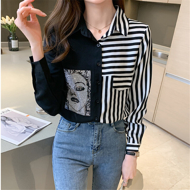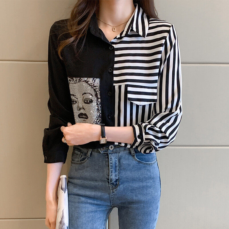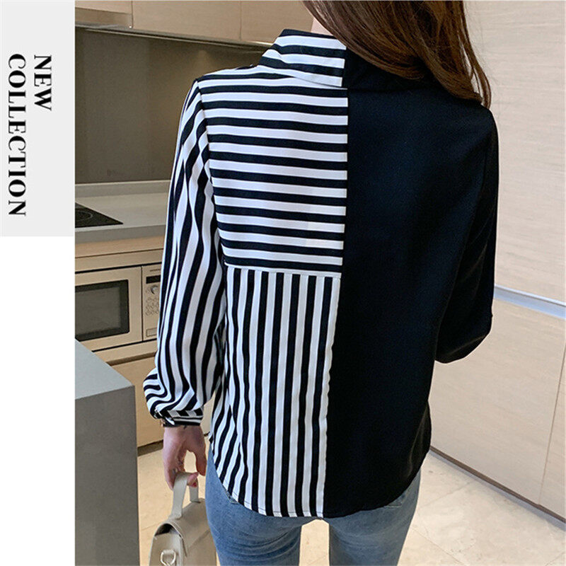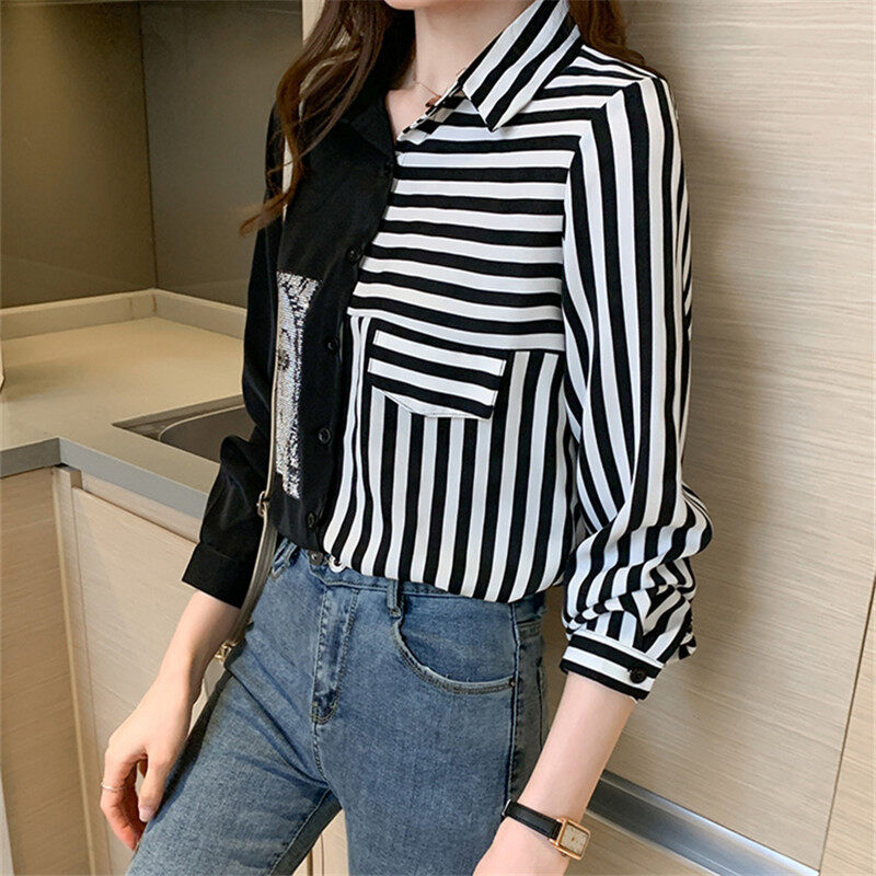Stripe Shirt Women Long Sleeve Chiffon Blouse Korean Style Casual Fashion Top