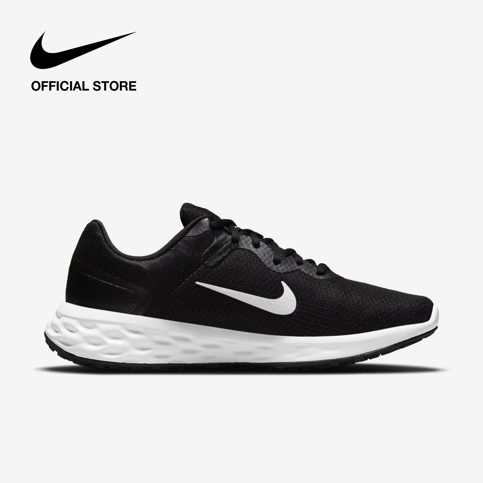A foam midsole delivers a softer ride than the Revolution 5. The outsole has a computer-generated design that creates a natural piston effect as you run, providing more cushioning and flexibility. They combine for durable traction.