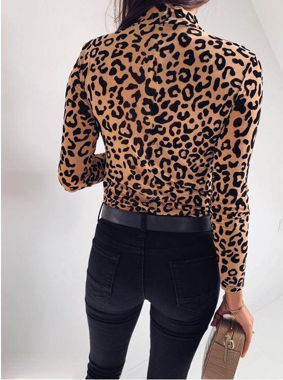 EDQRDQ Women's Leopard Print Long Sleeve High Neck T-Shirt Basic Solid Slim Cheetah Shirts Fitted Tee Top