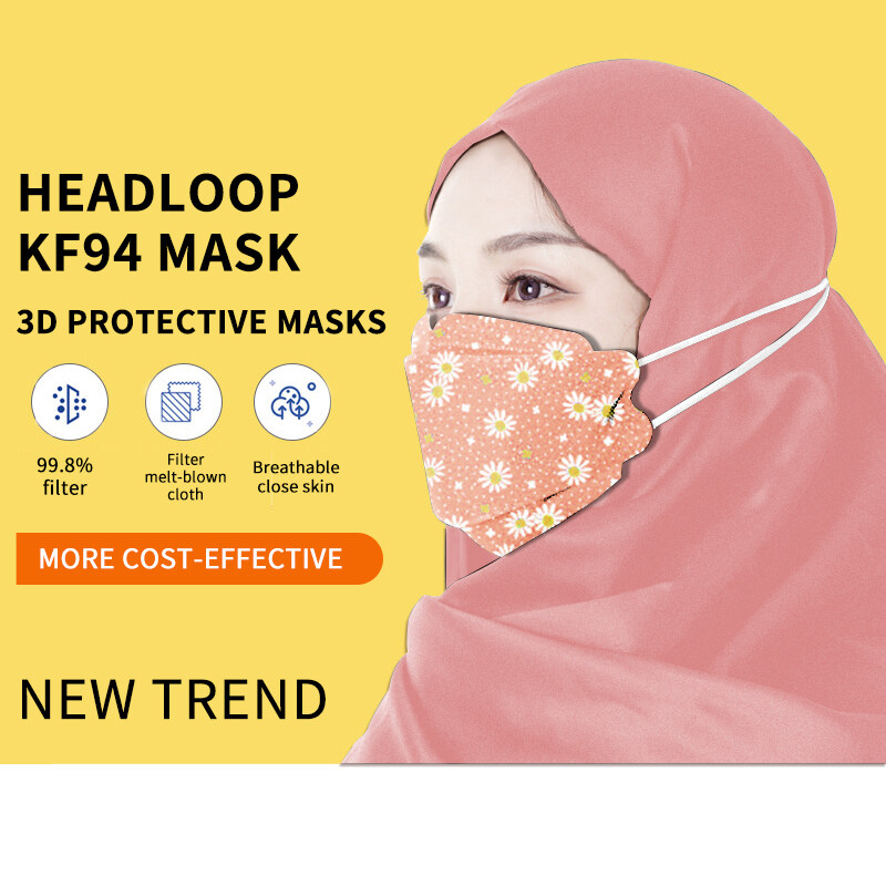 Evetion Kf94 50/100pcs Hijab Headloop FaceMask Korean Adult Mask 3D Design Reusable Masks for Flu Prevention 4-layer Protective Non-woven Fabric Meltblown Cloth High-quality Mask Comfortable to Wear i
