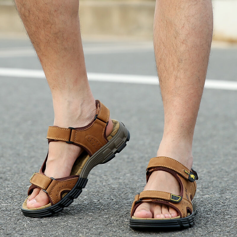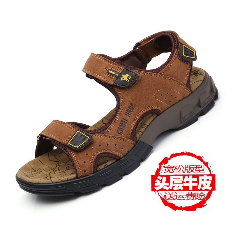 Mingli Camel Sandals Men's Summer Matte Leather Outdoor Casual Shoes Breathable Sports Sandals Open Toe Leather Sandals