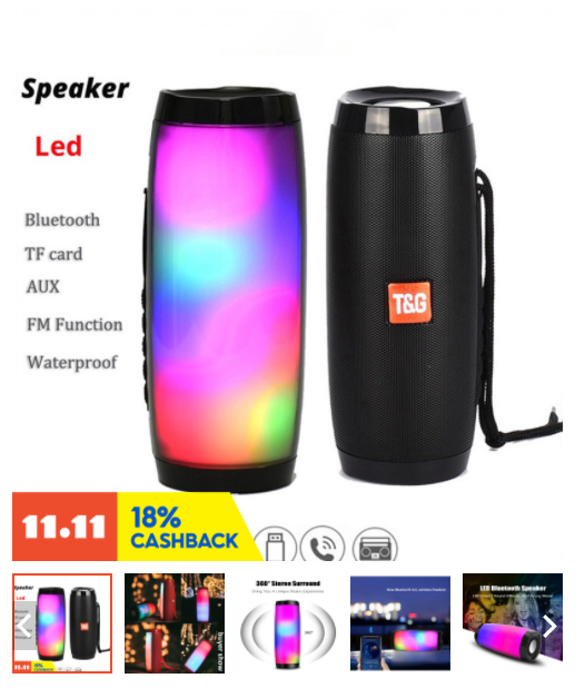 Portable Speaker//Column Wireless Bluetooth Speaker Powerful High BoomBox Outdoor Bass HIFI TF FM Radio with LED Light TG-157