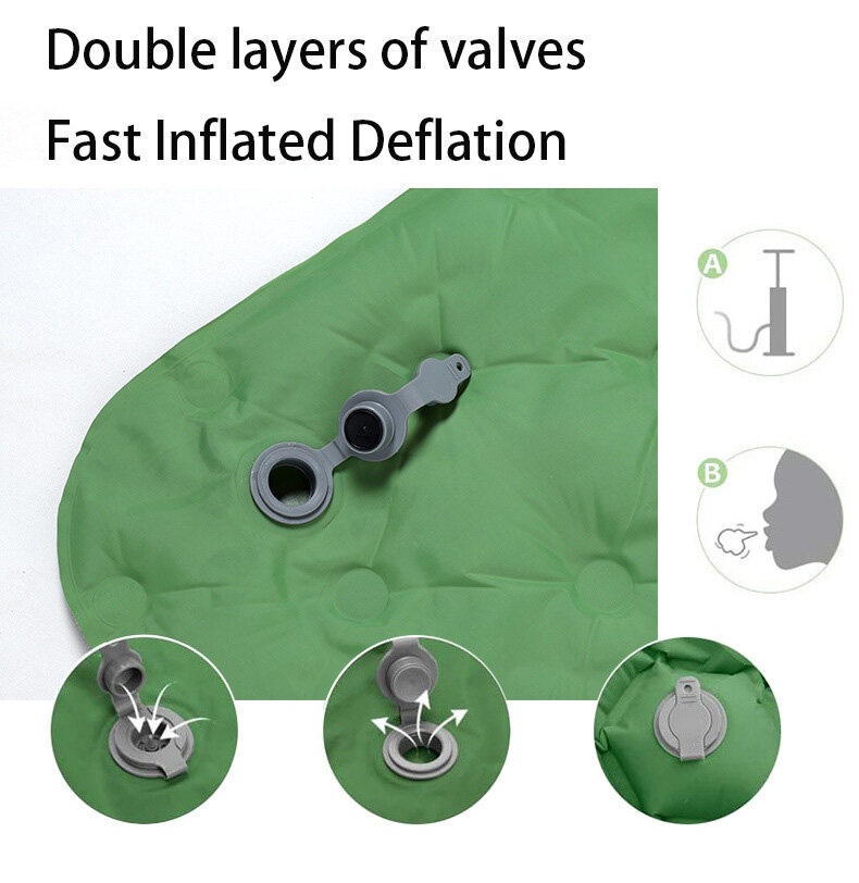 Comfort and no leak is the priority,with air-support cells design to limit air movement and heat loss.The cubed surface design fits the body's natural curves,whether you sleep on this on your back,sides or stomach,you can always feel comfortable. The specially designed Two Way Valve prevent the air leak,so there's no worry about get up and inflate it in the middle of the night, just have a good sleep.
