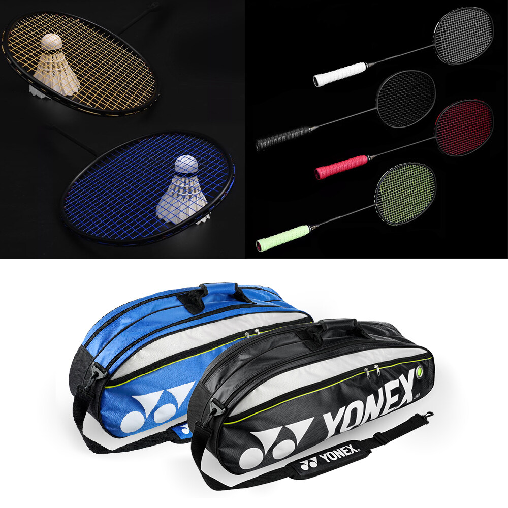 Zacro[Ready Stock] Y-onex 9332 Badminton Bag Double Zips Bag with Shoes Compartment Shoe Bag+ 2 Main Packets 2 Sides Pockets +1 Sling Straps Maximum capacity can hold 6 badminton rackets