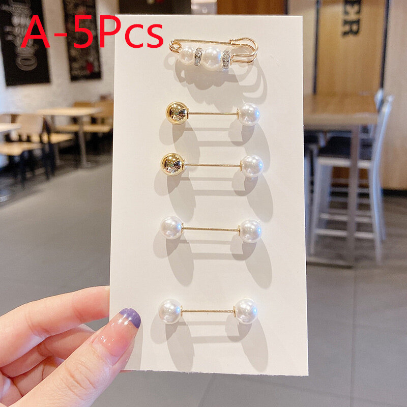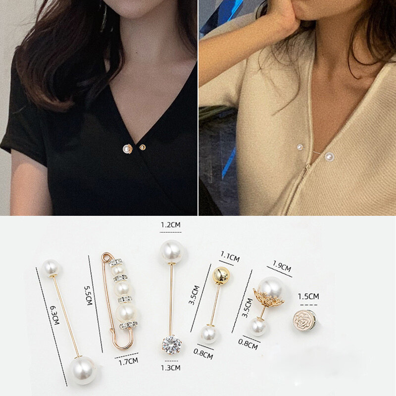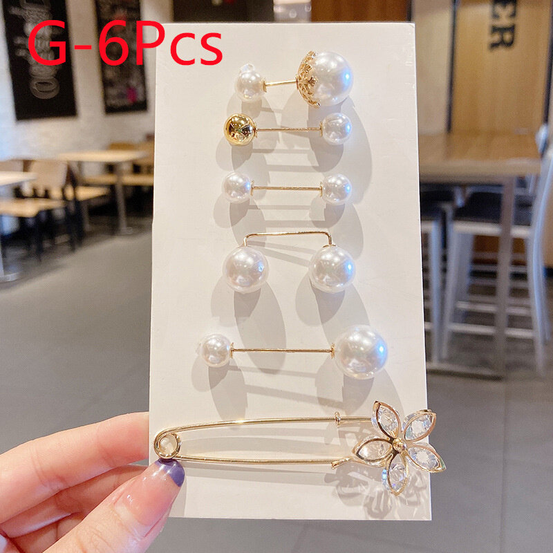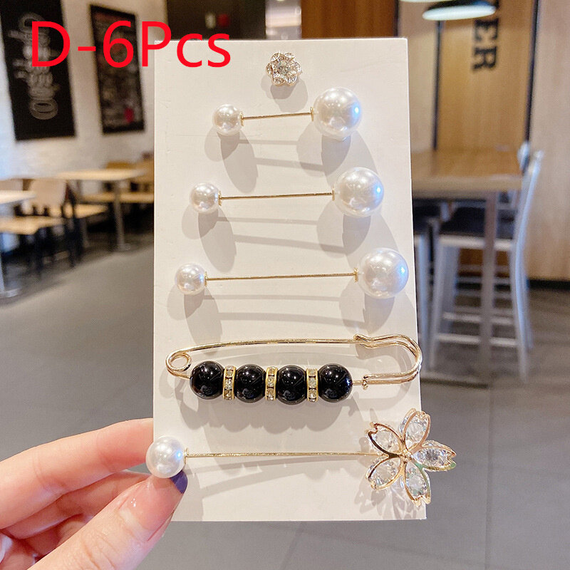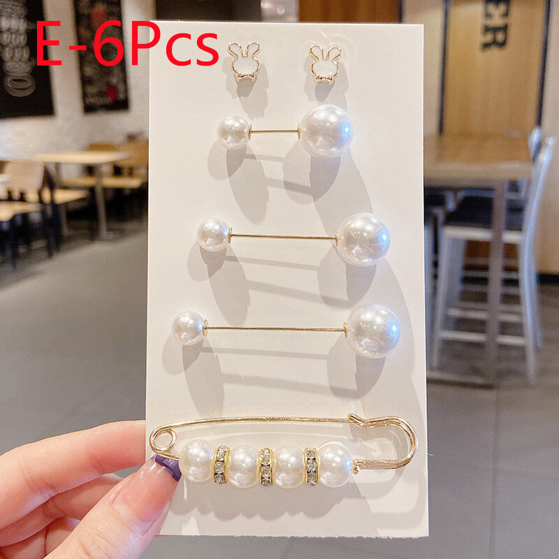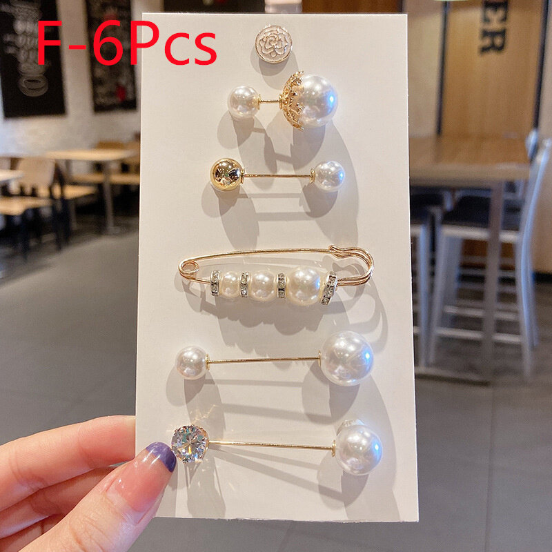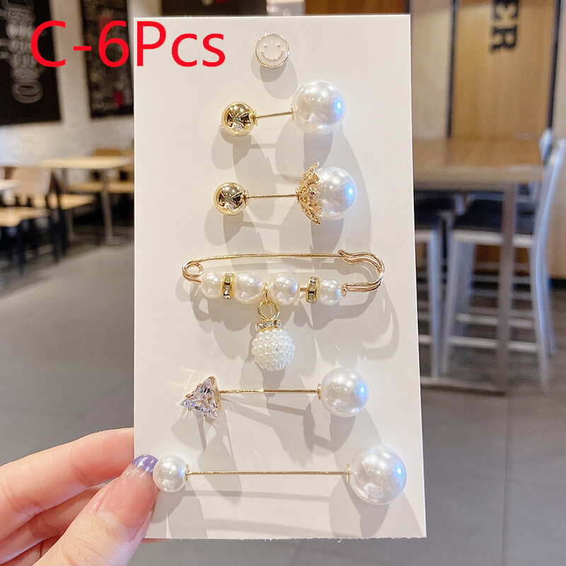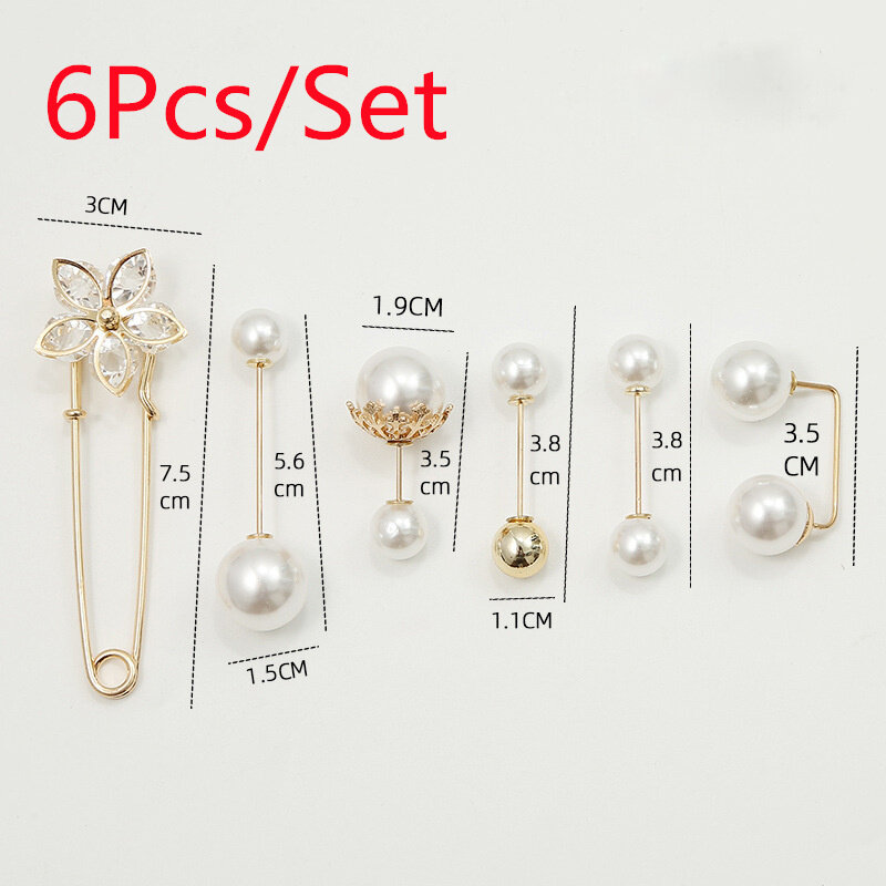 6Pcs/Set Big Pearl Brooch Set Fashion Clothes Brooch Pearl Lapel Pin Sweater Dress Brooch Pin Accessories