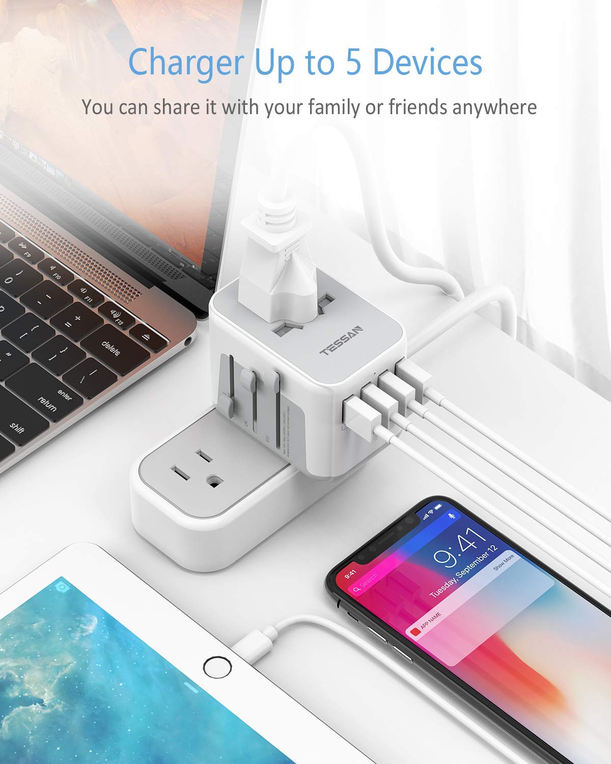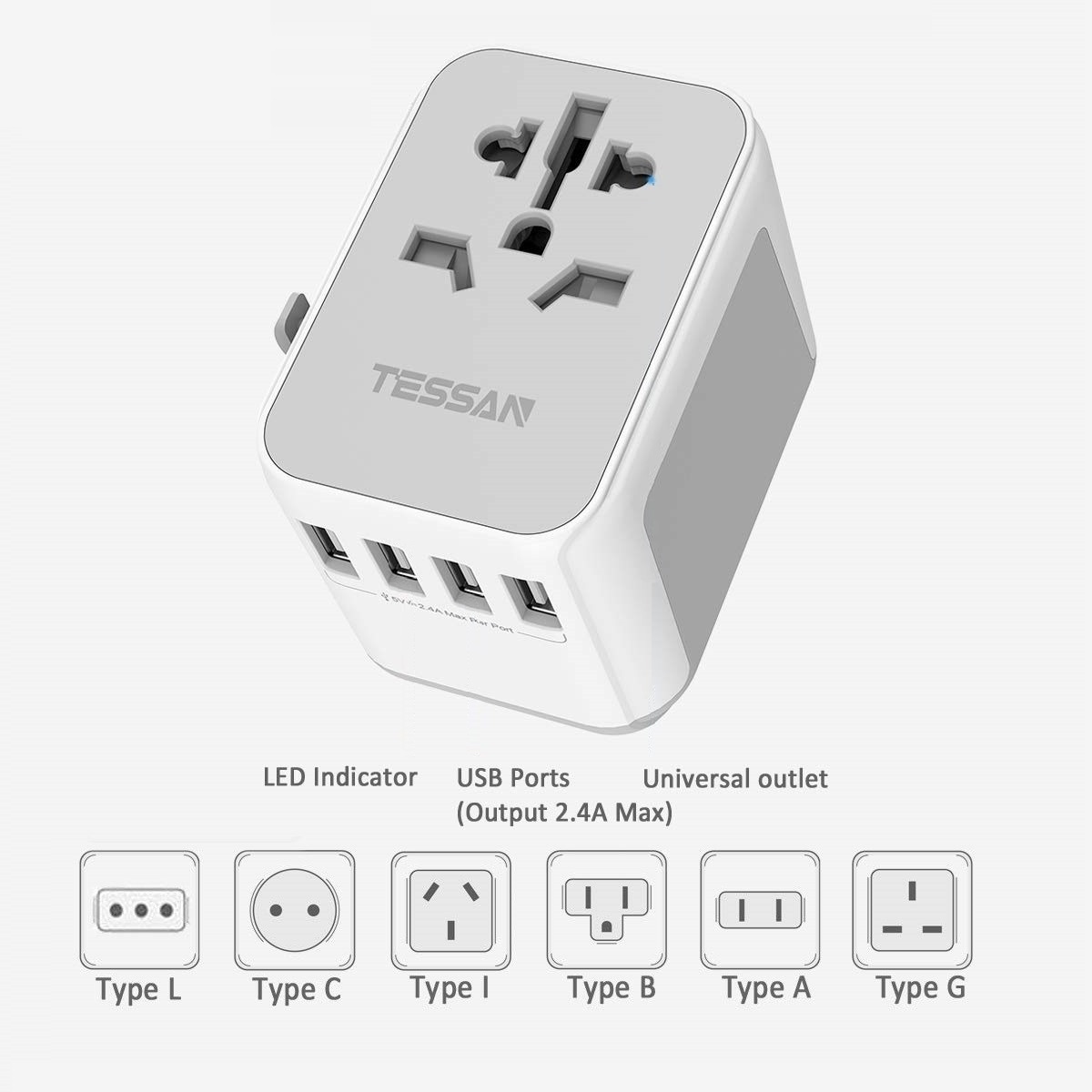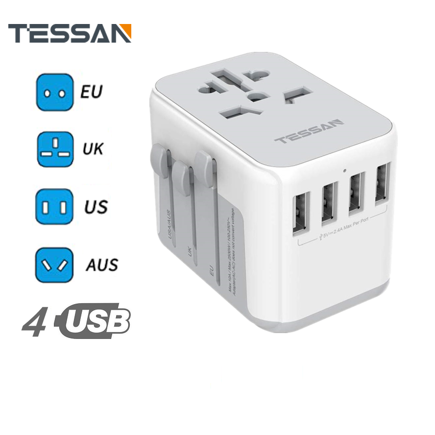 TESSAN Universal Adapter International Travel Adapter USB Charger Multi Ports with 4 USB Outlets, Universal Traveller Power Plug Travel Adaptor Universal, Worldwide All in One Wall Charger Converter f