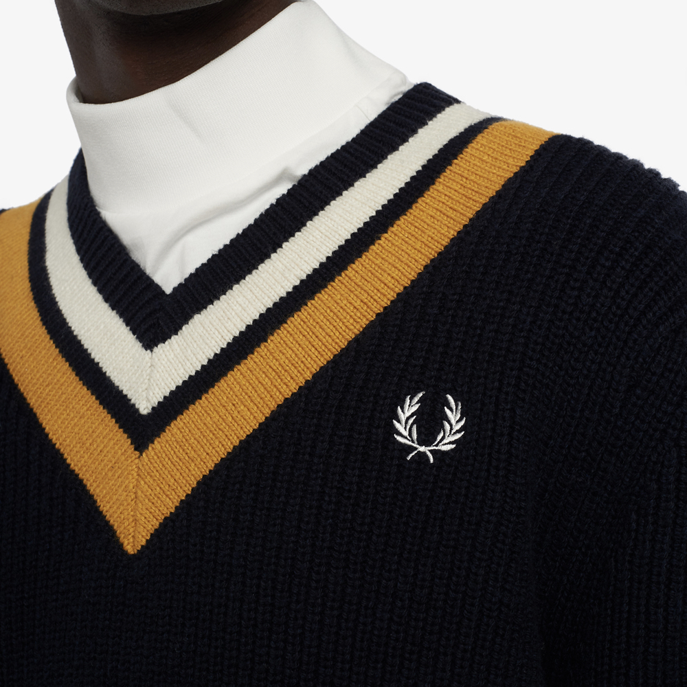 Fred Perry K2544 Striped V Neck Jumper - (Navy)