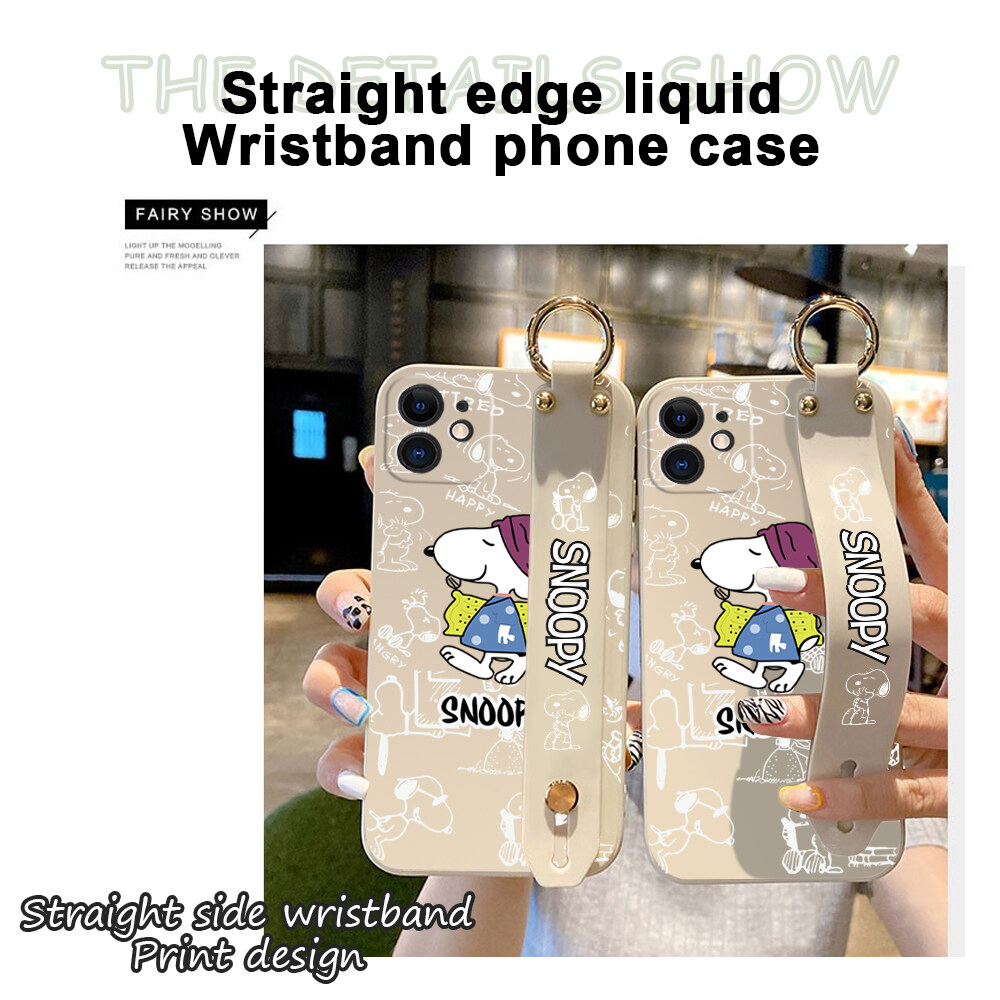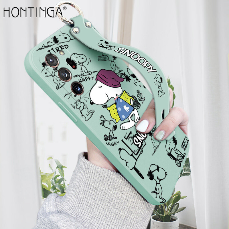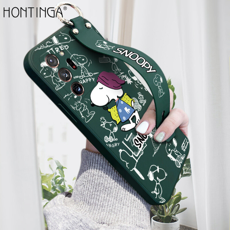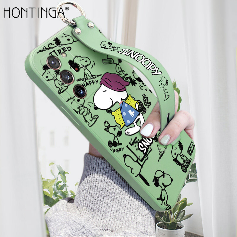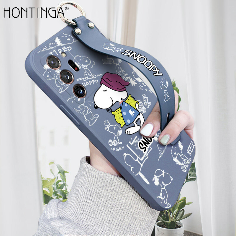 (With WristStrap)Hontinga Casing Case For Samsung Galaxy Note 20 Ultra/Note20 Case Anime Cute Square Original Liquid Soft Silicone Edge Pattern Rubber Case Full Camera Protection Cases Back Phone Casi
