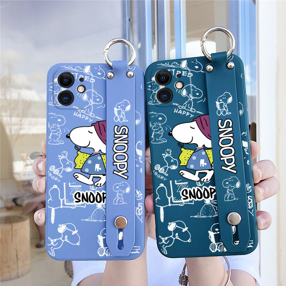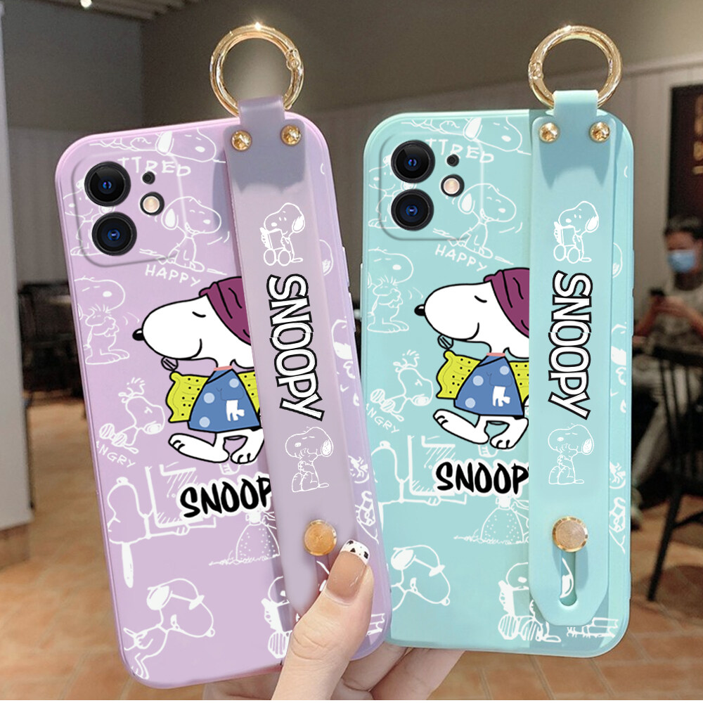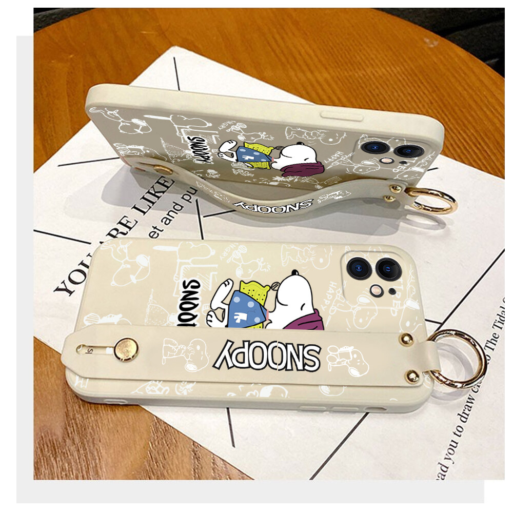 (With WristStrap)Hontinga Casing Case For Samsung Galaxy Note 20 Ultra/Note20 Case Anime Cute Square Original Liquid Soft Silicone Edge Pattern Rubber Case Full Camera Protection Cases Back Phone Casi