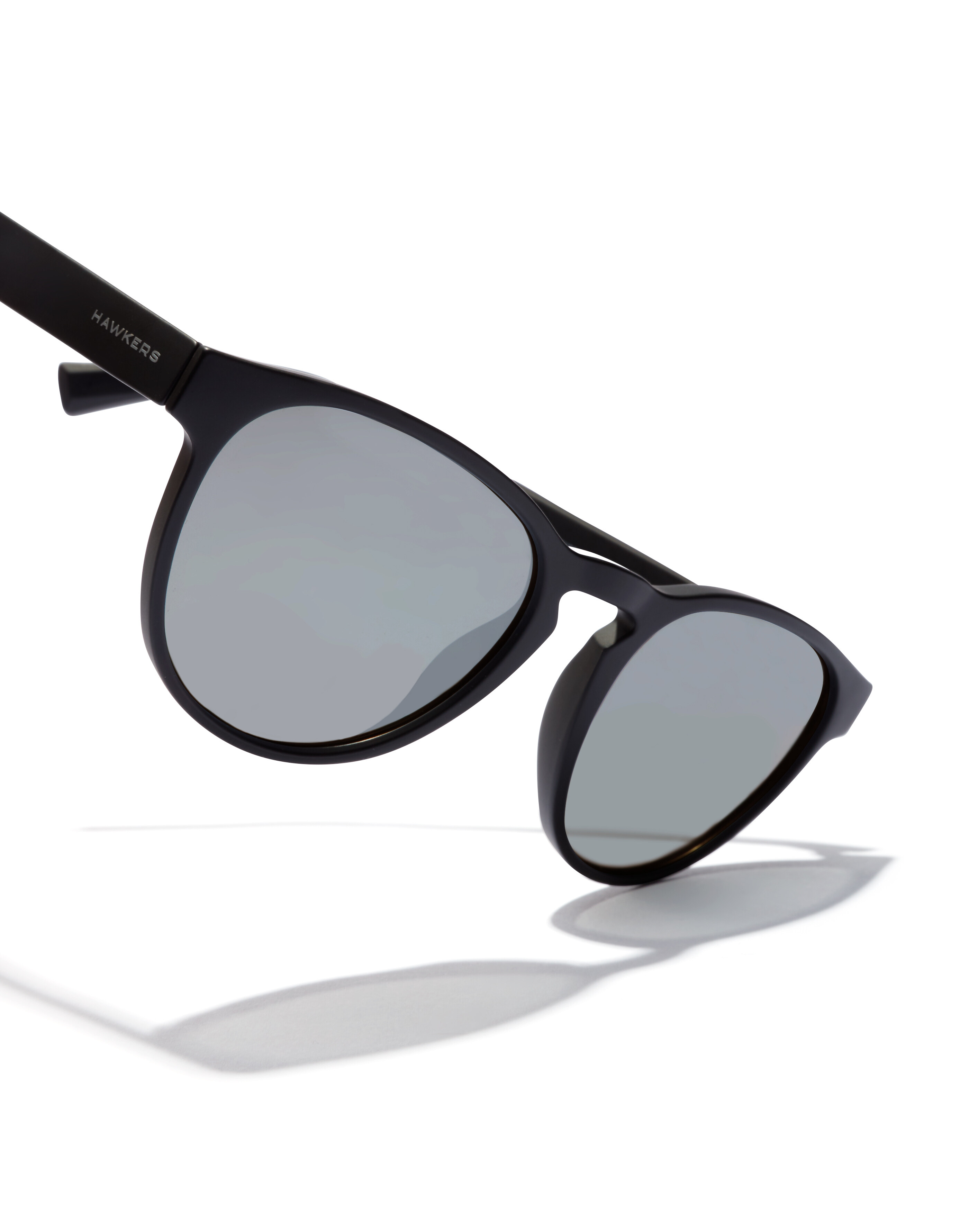 An oversize vintage panto style with classic keyhole bridge. The matt black frame and mirrored chrome lenses combine for an understated retro look.