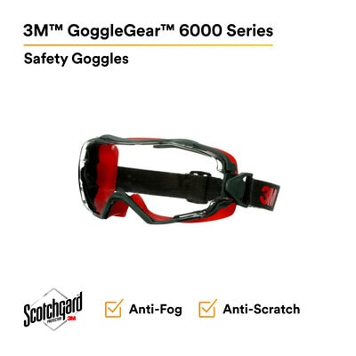 3M Safety Goggles - Scotchgard GoggleGear 6000 Series (Red Shroud)