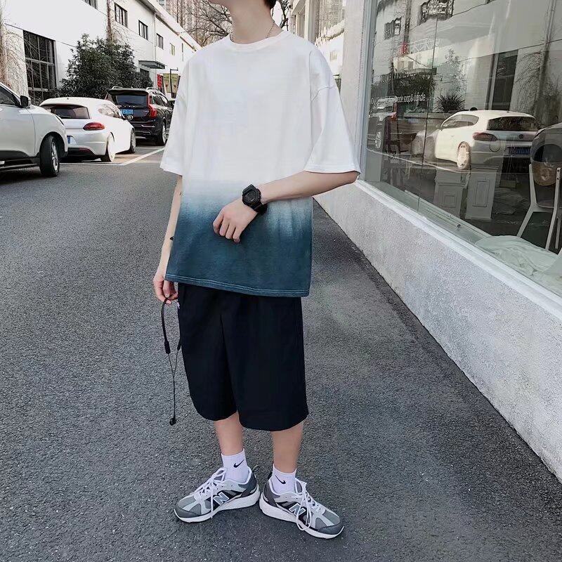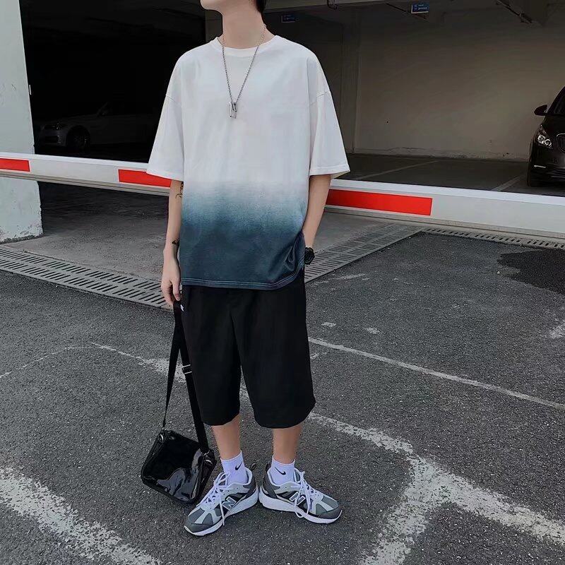 t shirt Men New Korean Style Oversize Short Sleeve Gradient Color Tee Fashion Tops Loose Casual t-shirt