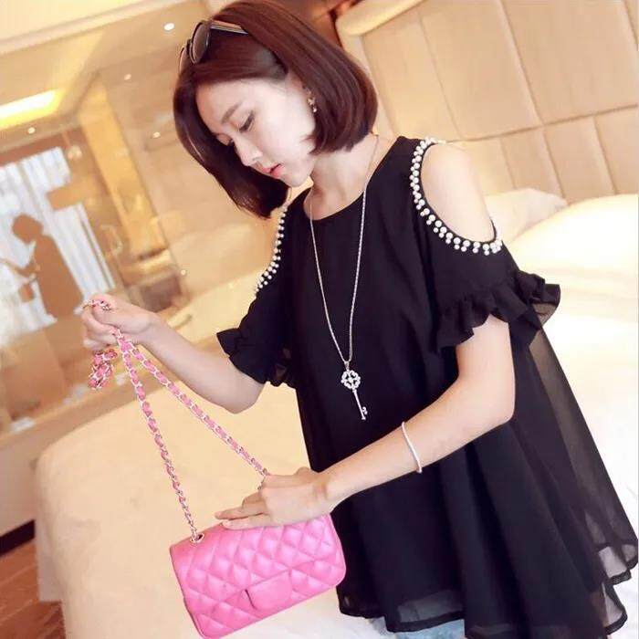 EDQRDQ Off Shoulder Plus Size Loose Tops for Women Ruffle Trim Short Sleeve Blouse Casual Chiffon Shirt