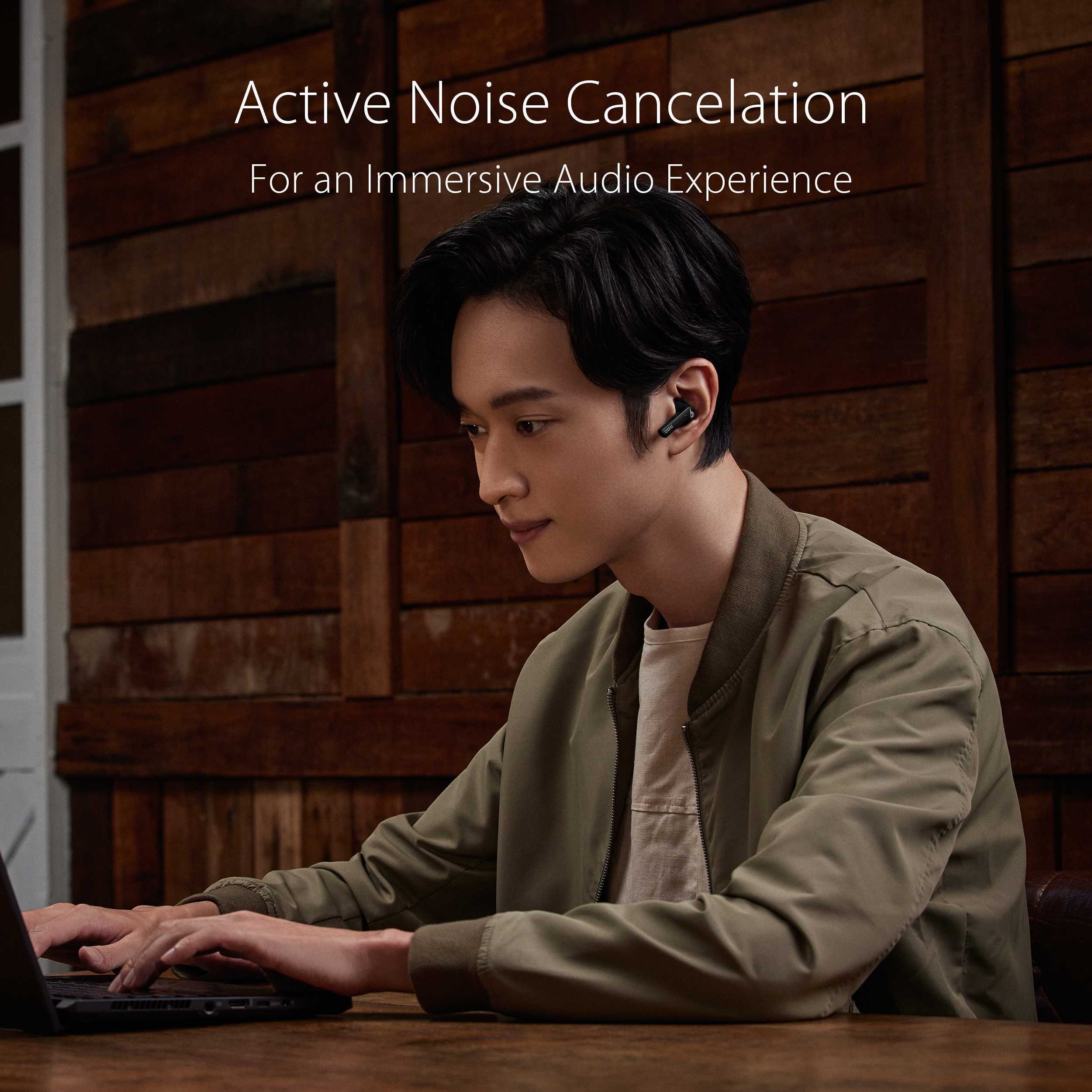ASUS ROG Cetra True Wireless gaming headphones with low-latency wireless connection, ANC, up to 27-hour battery with wireless-charging case, IPX4 water resistance and support for EQ/virtual 7.1 via Ar
