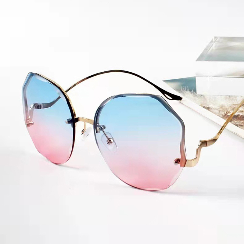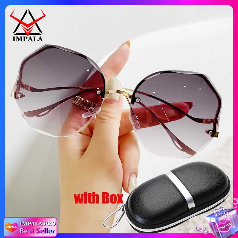 IMPALA QT3001L Fashion Rimless Sunglasses for Women Korea Style Sun Glasses for Female Sand Beach Eyewear UV Protective HD Lens Black Pink Blue Lens Optional with Box