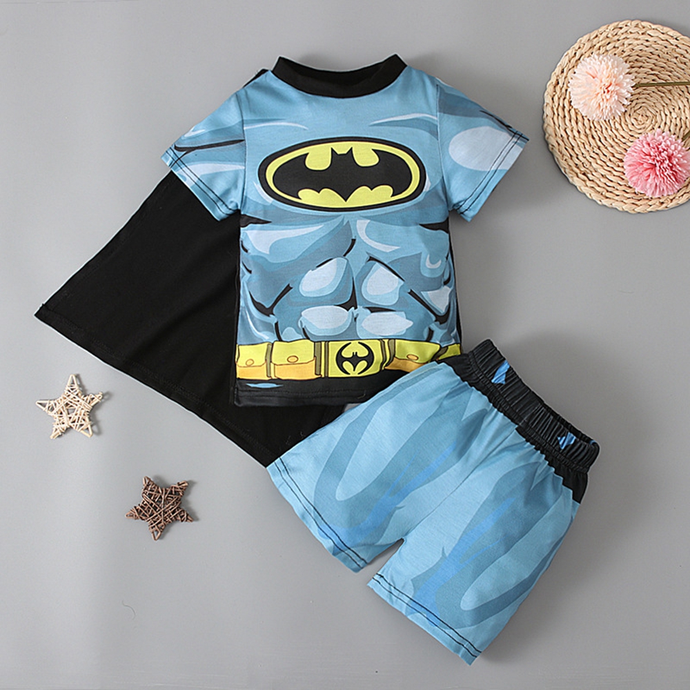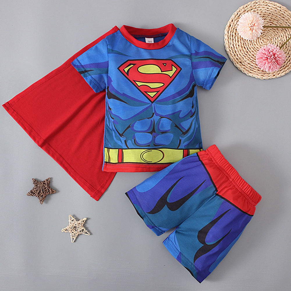 Summer Kids Boys Clothing Set Superhero Supermans Spiderman Ironman Bat-man Holk Captain America Print T-shirts + Short Pants Children Clothes Suits Sleepwear For Boy High Quality Age 1-8 Years