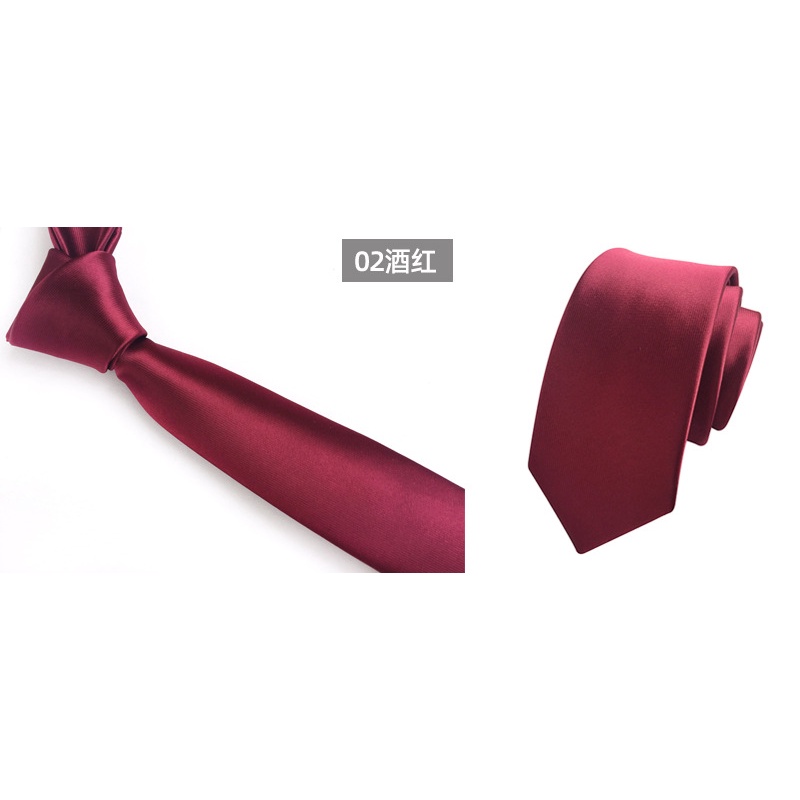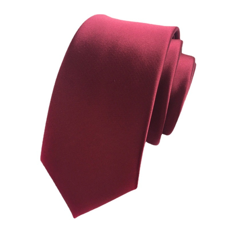 Unisex Solid color Skinny Korean Style Plain Black Necktie Slender 6CM Formal Tie Busniess Tie Plain black Maroon tie