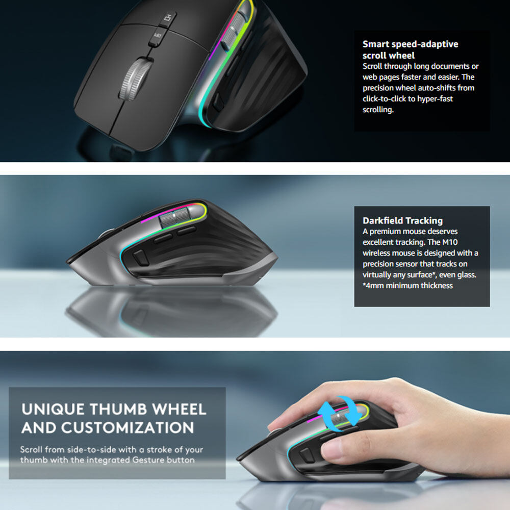 VICTSING M10 Dual Mode BT1+BT2+2.4G Wireless Bluetooth Mouse Multi-Device Ergonomic Rechargeable RGB 4000 DPI Mice