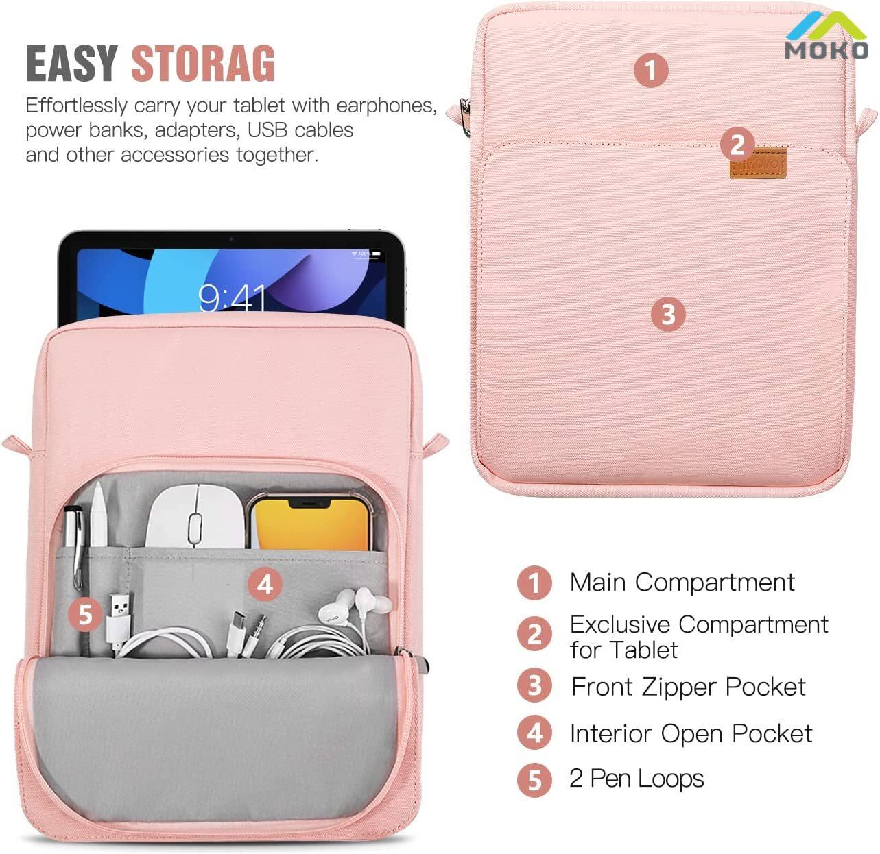 MoKo 9-11 Inch Tablet Sleeve Bag Carrying Case with Shoulder Strap for IPad Pro 11 2021-2018, IPad Air 5/4 10.9, IPad 10.2, Galaxy Tab A8 10.5/Tab S8 11"/Tab A7 10.4, Surface Go 2/1