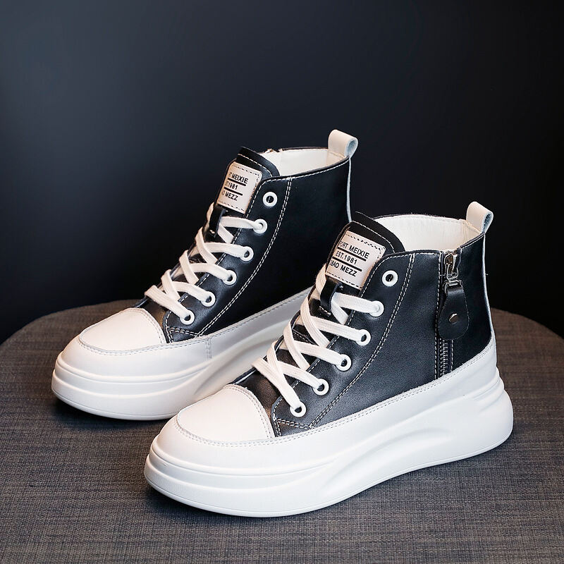 Korean Fashion Brand 2021 New Spring and Autumn Muffin Thick-Soled White Shoes Women's All-Match Internet Celebrity Lace-up High-Top Board Shoes Women