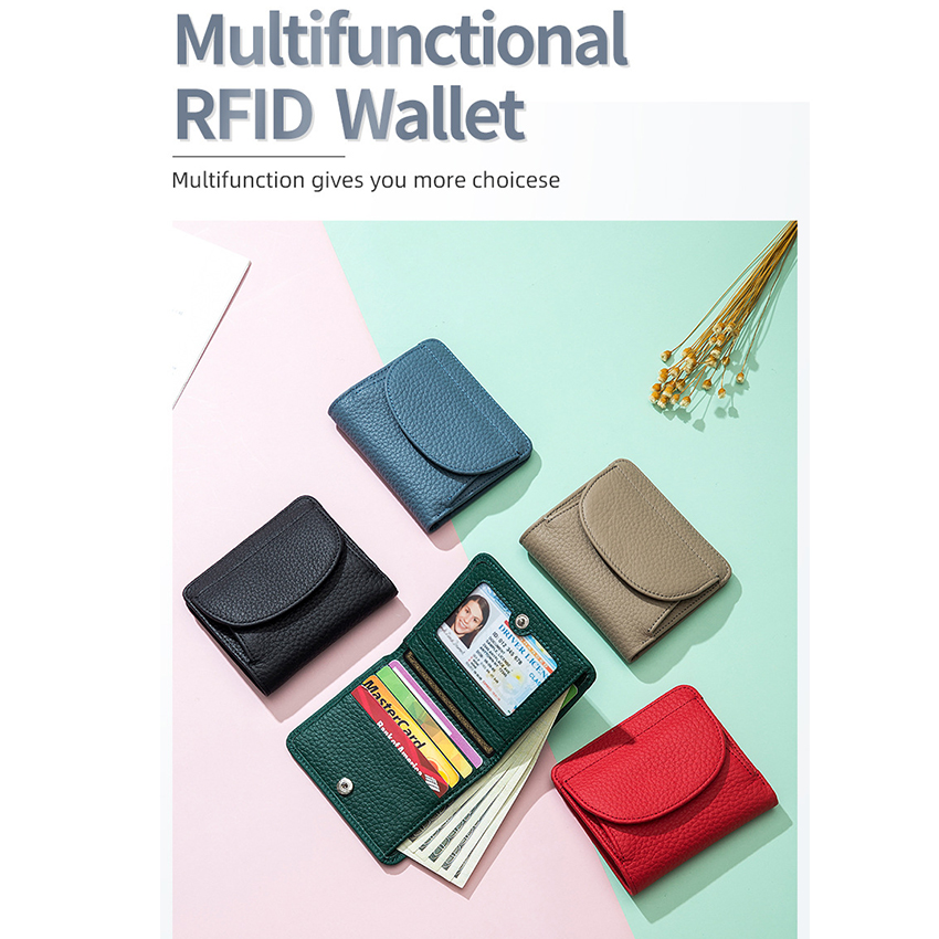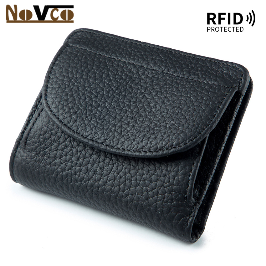 Novco Women's Genuine Leather Wallet, Multifunction Card Holder Wallet for Women, Anti Theft RFID Credit Card Holder, Small Leather Credit Card Wallets Short Compact Cute Small Coin Purse for Women