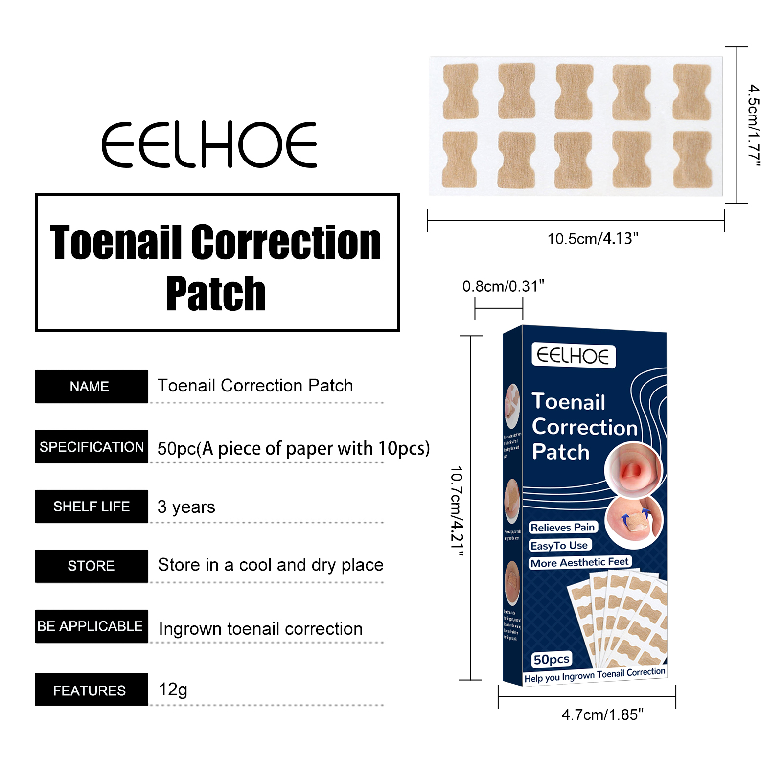2. Improve Ingrown Nail: Attached to the surface of the nail will produce upward rebound pull, which will be embedded in the flesh of the nail was slowly pulled out, helps toe nails return to normal bending state, no longer embedded in the meat, making the nail healthy growth.