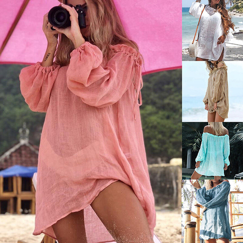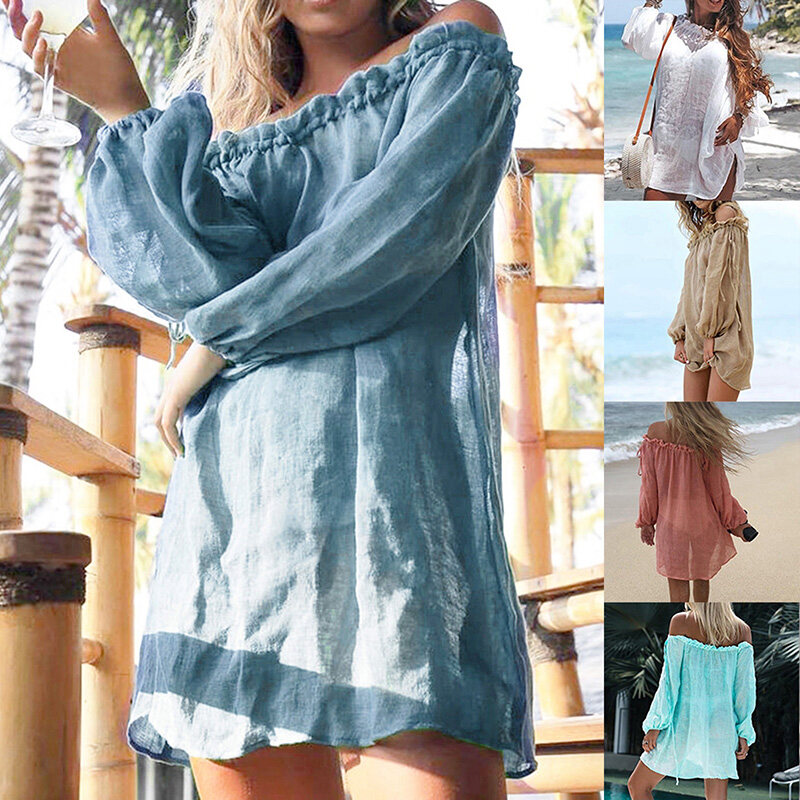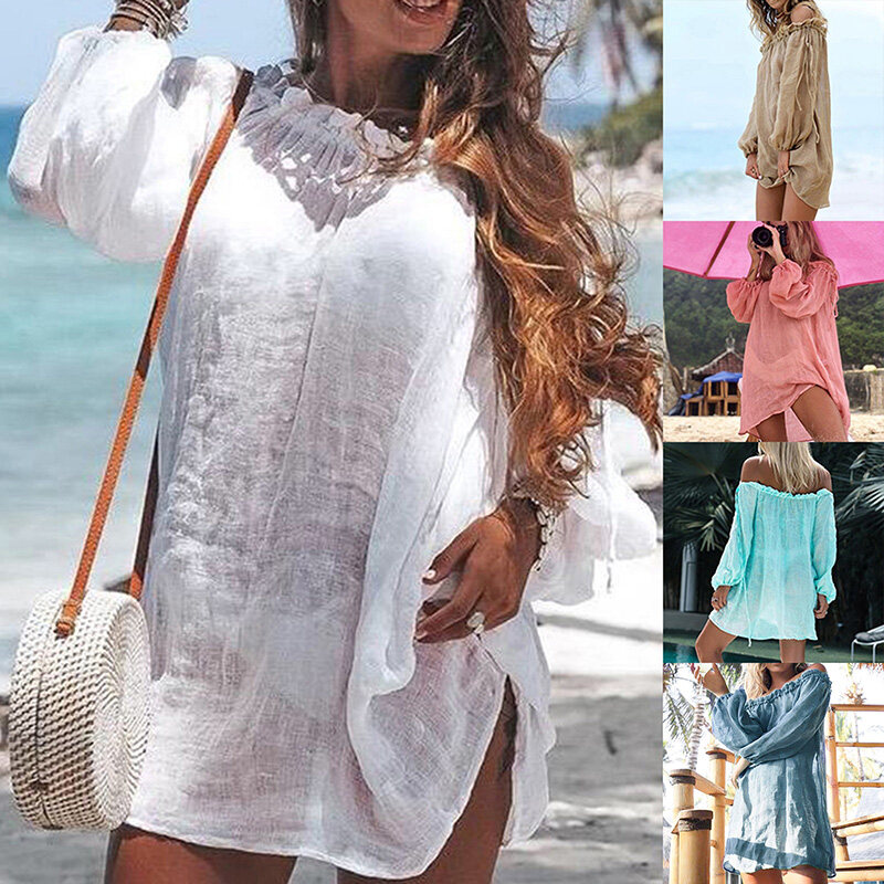 Package includes:a PCS swimsuit cover upMaterial: 100% polyesterStyle:cute sexySize:FColor:Khaki,White,Green,Red,BlueBeach Dress Cover Up White Thong Swim Cover-ups Long Sleeve Beachwear Off Shoulder Bikini Women Cover up tunicSize: please allow 1-2cm differs due to manual measurement, thanks.Note: Due to the difference between different monitors, the picture may not reflect the actual color of the item.