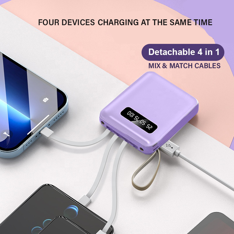 Mini Power bank 20000mAh with 4in1 DETACHABLE Cables Powerbank with LED Torch Light