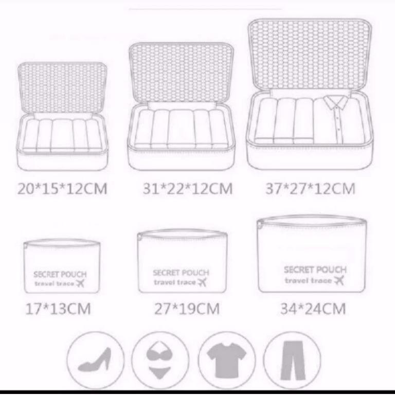 6 in 1 traveling bag in bag organizer (tolerance size + / - 0.5 - 1 cm):