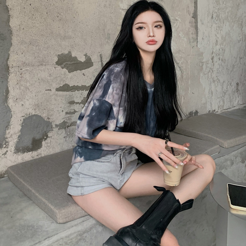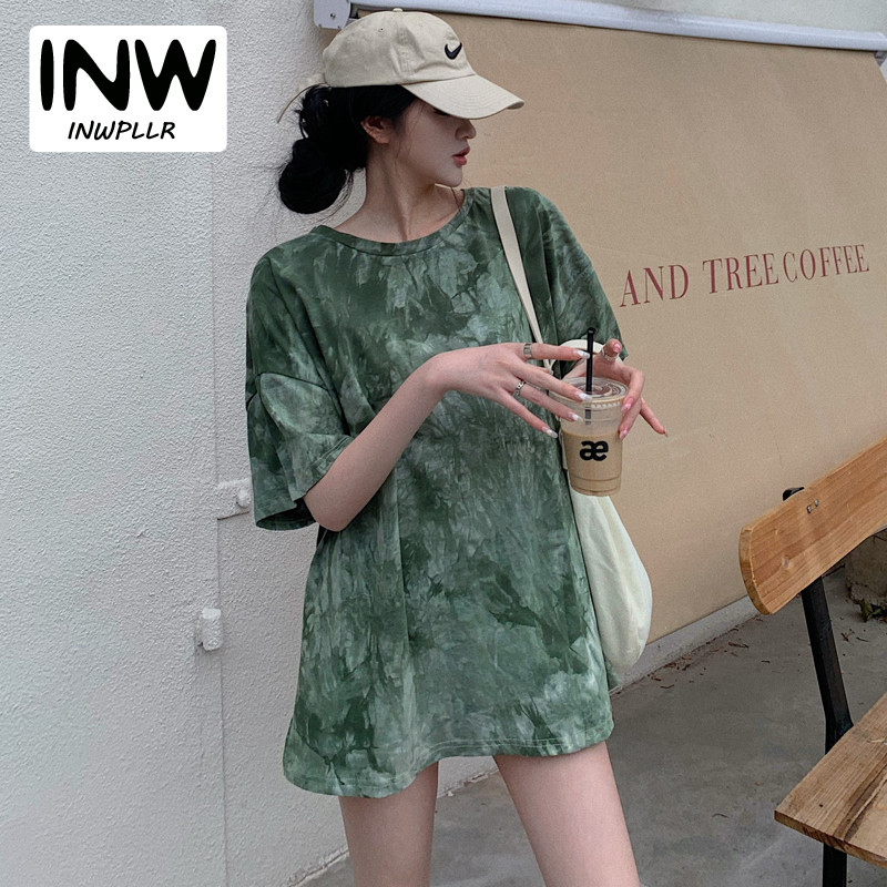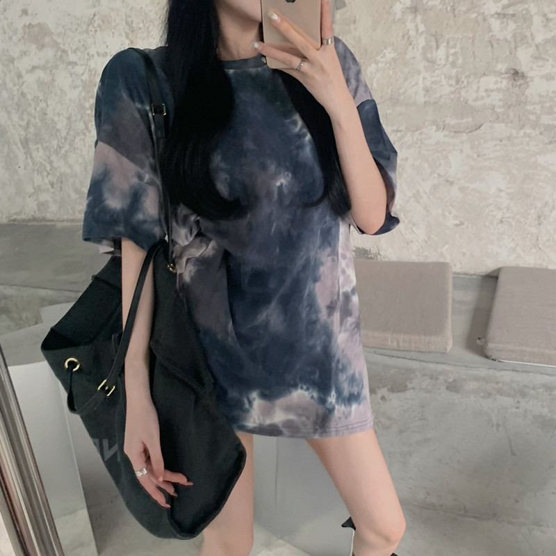 INWPLLR Backless Tie-dye Tshirts Women Ins Loose Short Sleeve T-shirt Summer New Style Mid-length Tops 4XL